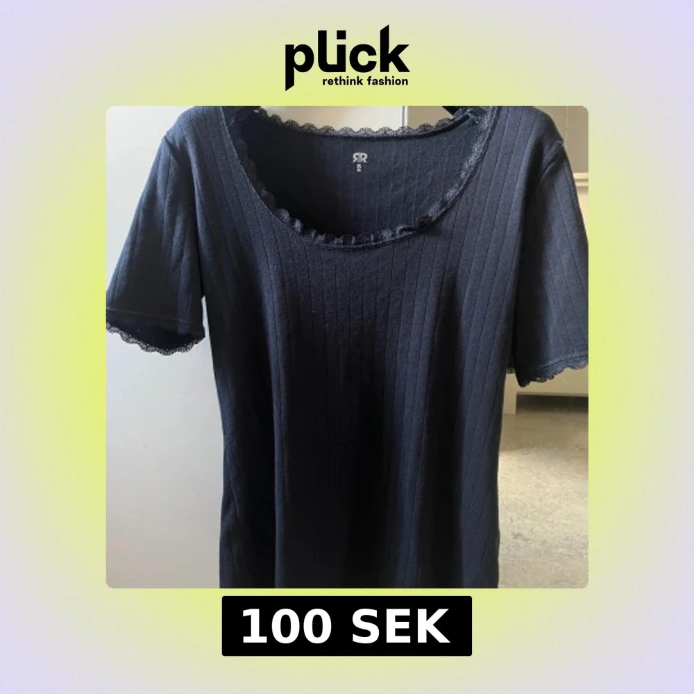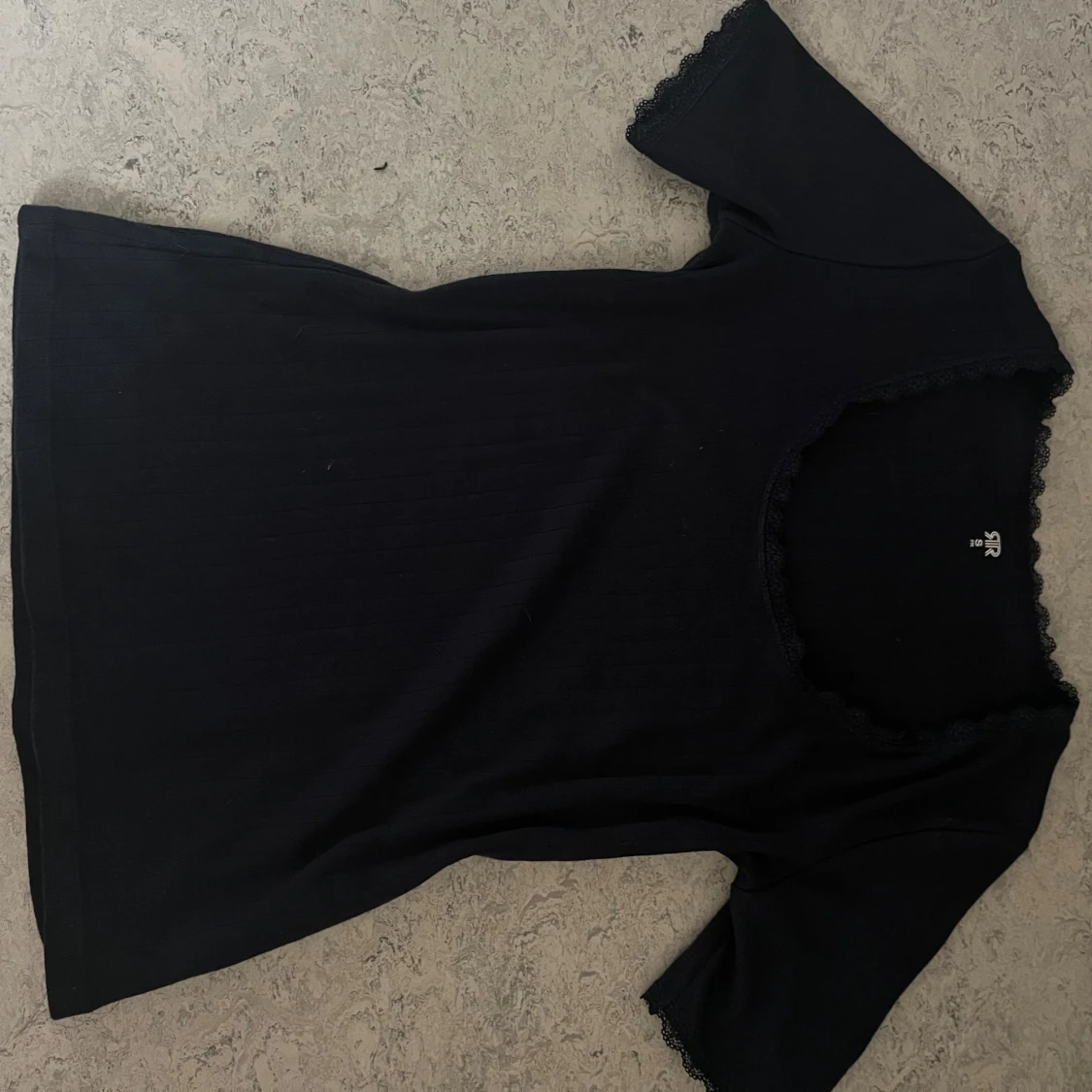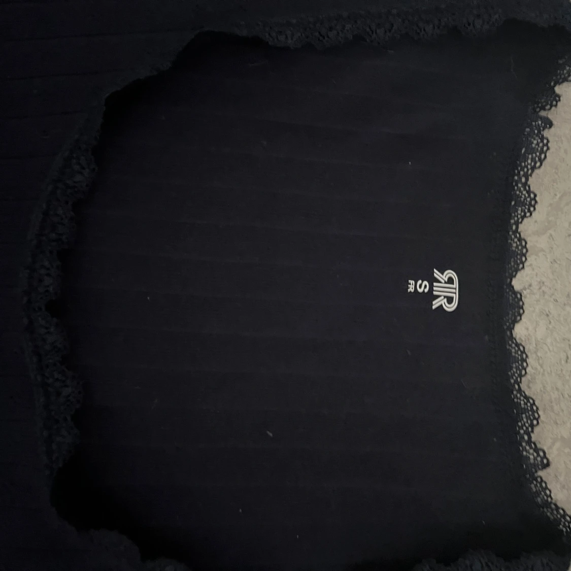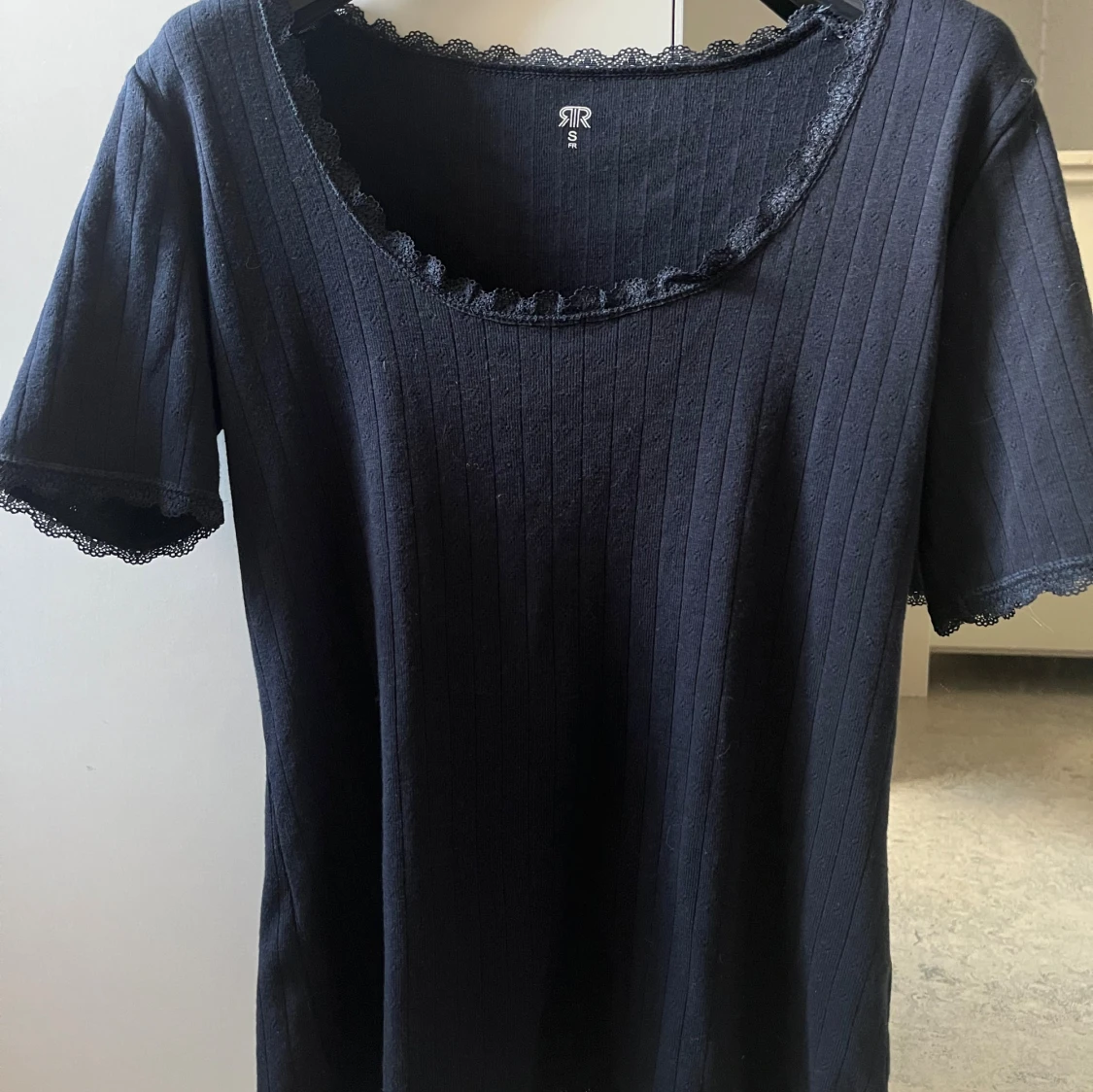Söt mörkblå topp med spets detaljer. Storlek S men mer som M