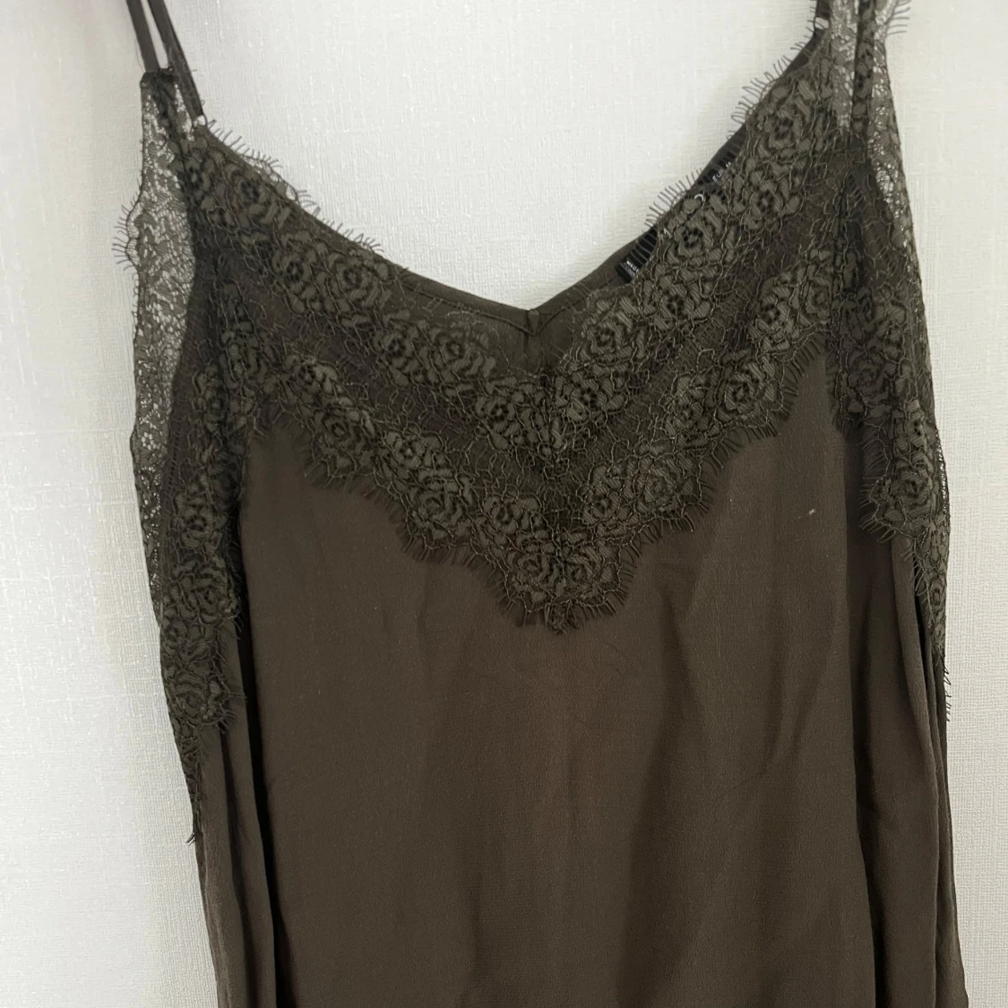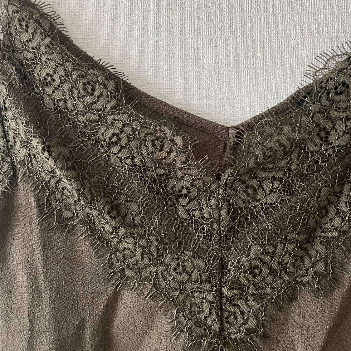 Ett fint spetslinne i militärgrönt. Säljes för 40 kr och är i strl L, passar också M 💚