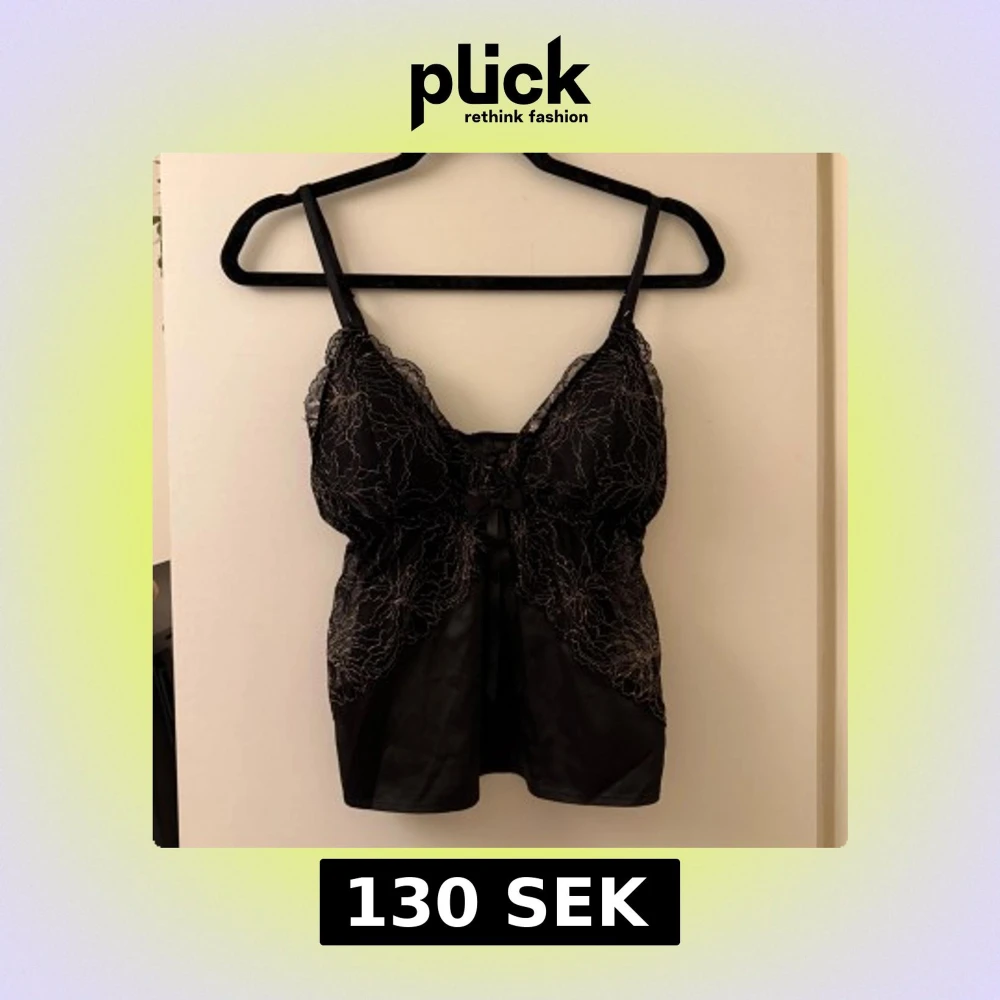 Svart satin topp med guldigt mönster. Köpte den av någon annan som sa att den var storlek xs, men jag skulle uppskatta den till s. Finns alltså ingen lapp inuti.
