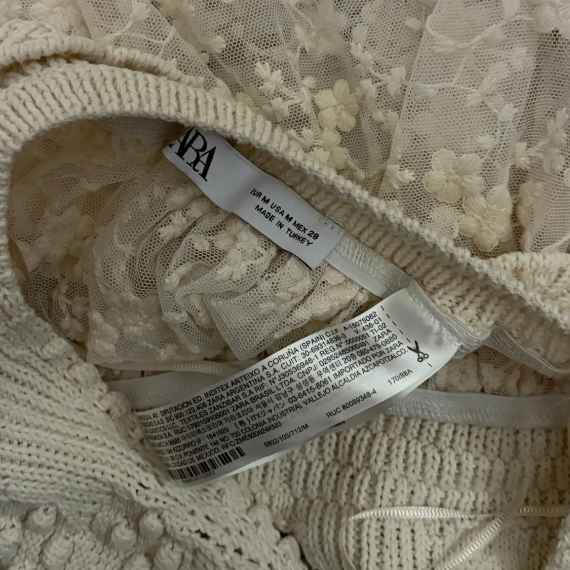 jättesöt spetstopp från zara i storlek M. perfekt för sommaren och passar jättebra till jeans eller en en kjol.