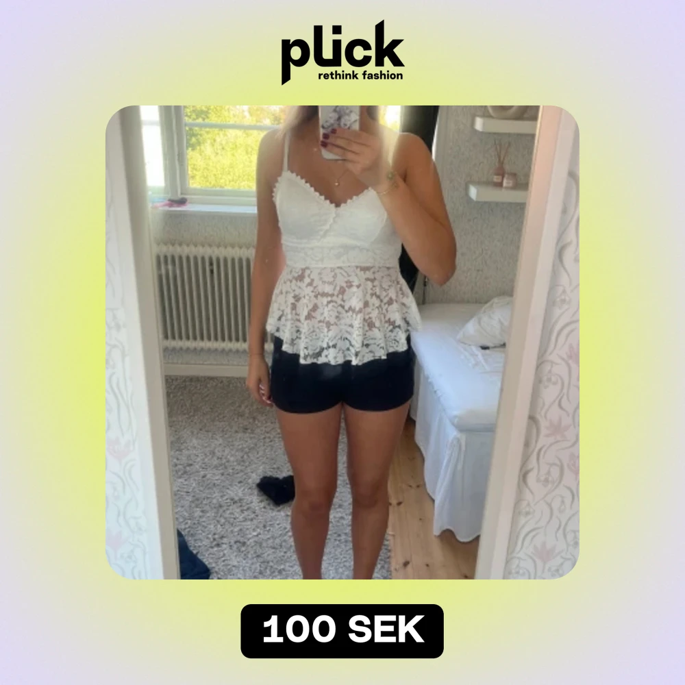 Vitt spettslinne köpte den på nån marknad så den har ingen lapp men skulle säga att den passar xs- liten M. Använd ca en gång och nypris 20”