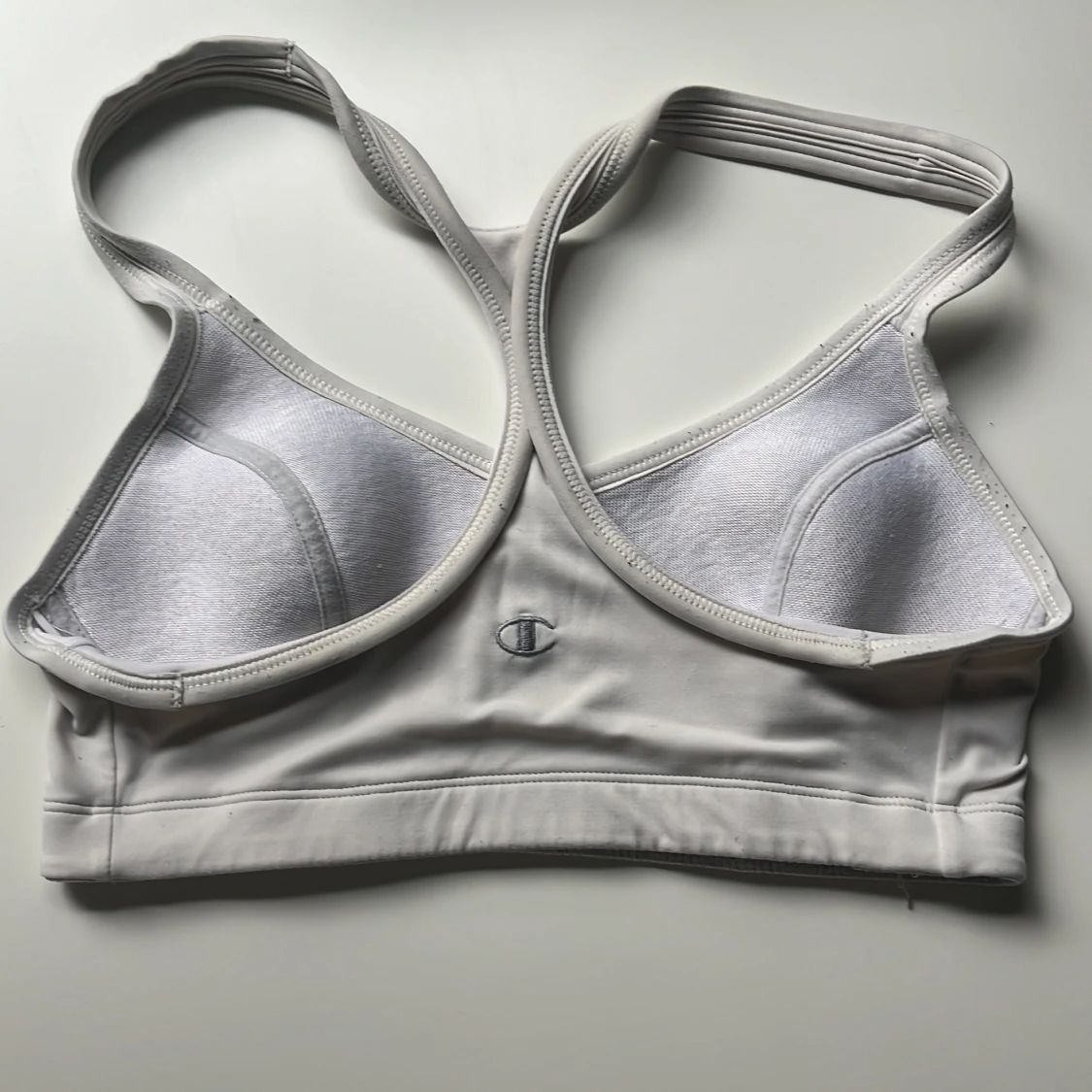 Vit sportbh från champion i okej skick. Storlek står ej men passar mig som vanligtvis har S.
