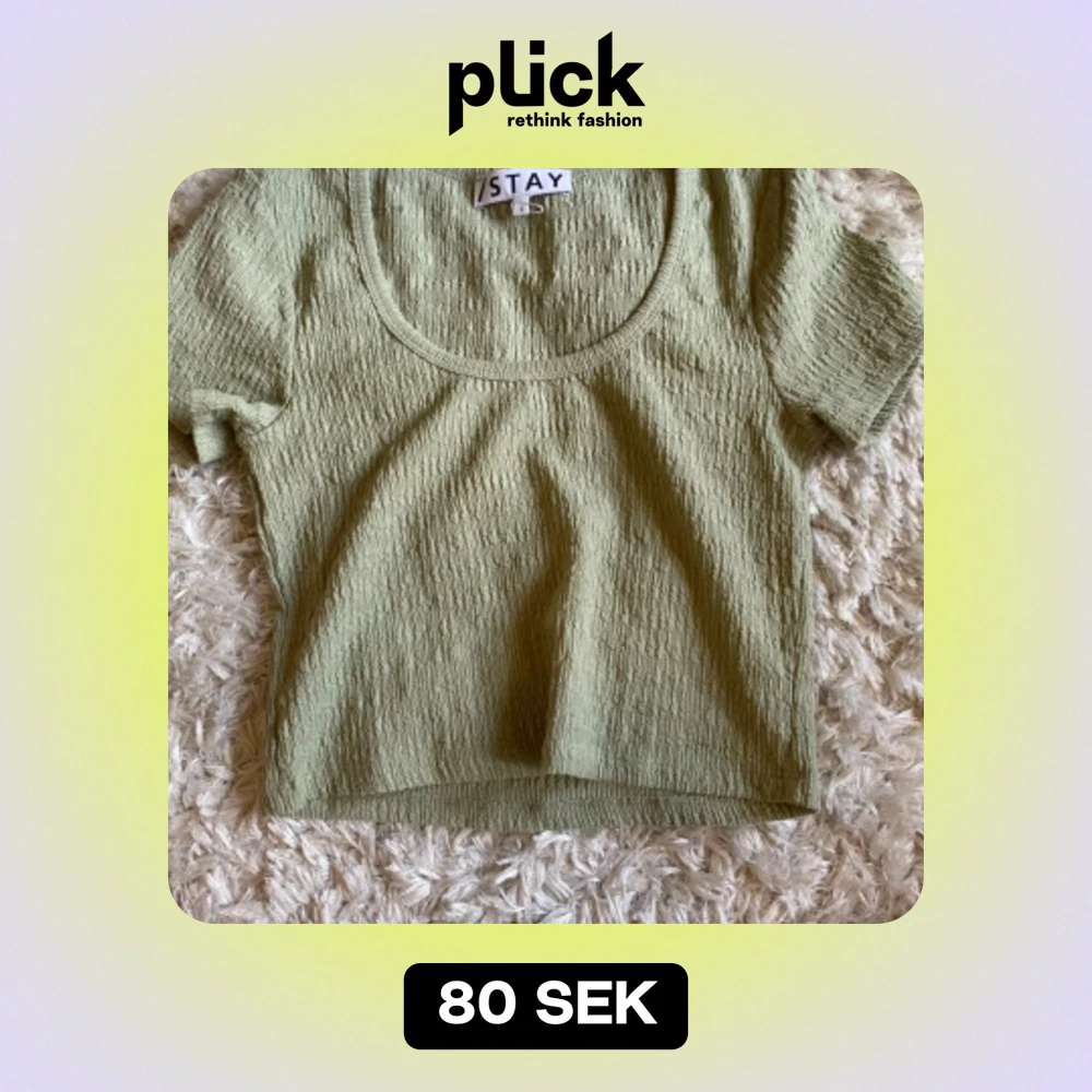 Säljer en superfin grön ribbad topp från STAY. Toppen är i storlek S och i nyskick.