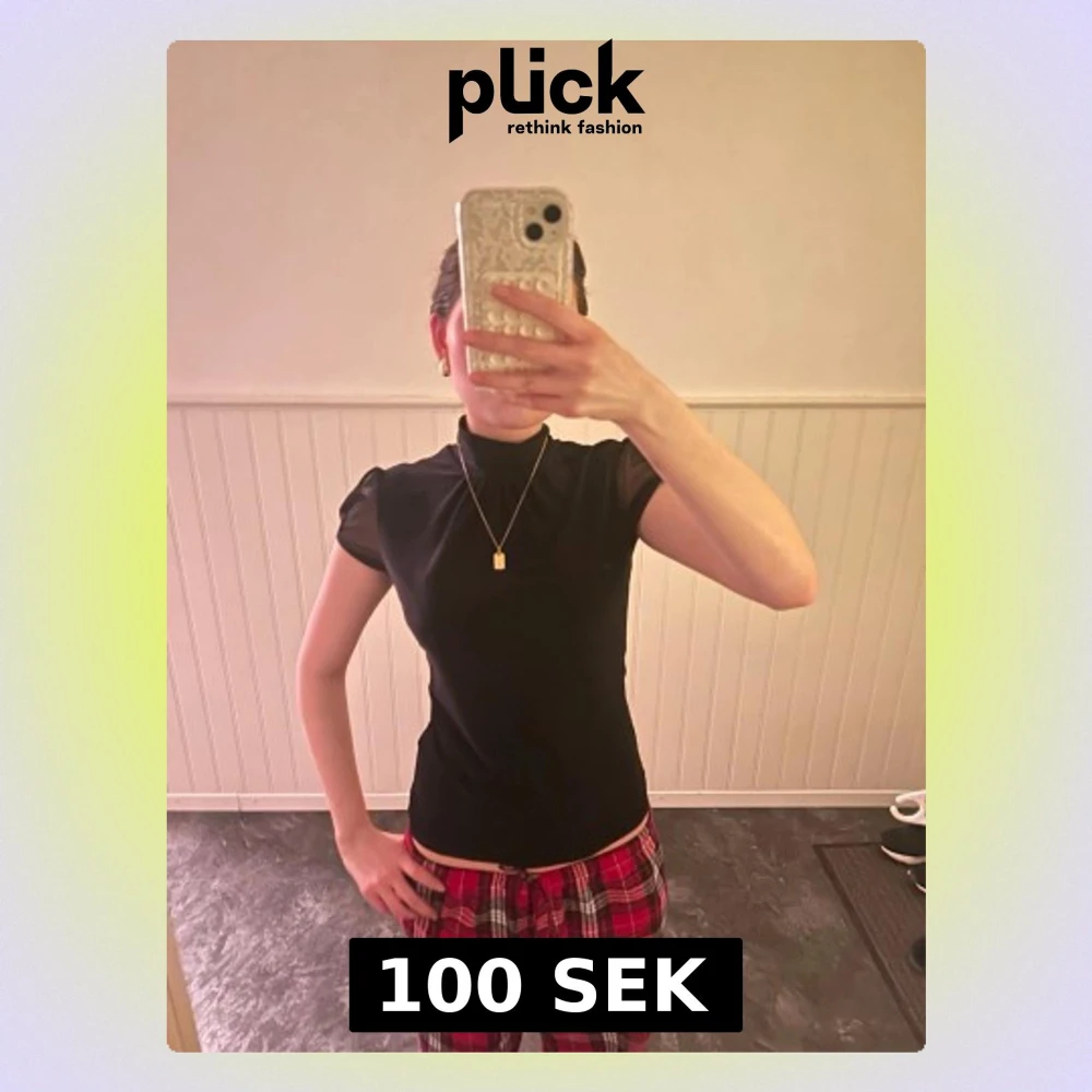 Snygg svart polotopp med korta puffärmar och figurnära passform. Toppen har en hög krage och är tillverkad i ett stretchigt material som sitter bekvämt. Perfekt att styla med både jeans och kjol för en trendig look. Storlek 42 men jag har 34,36 och de passar perfekt