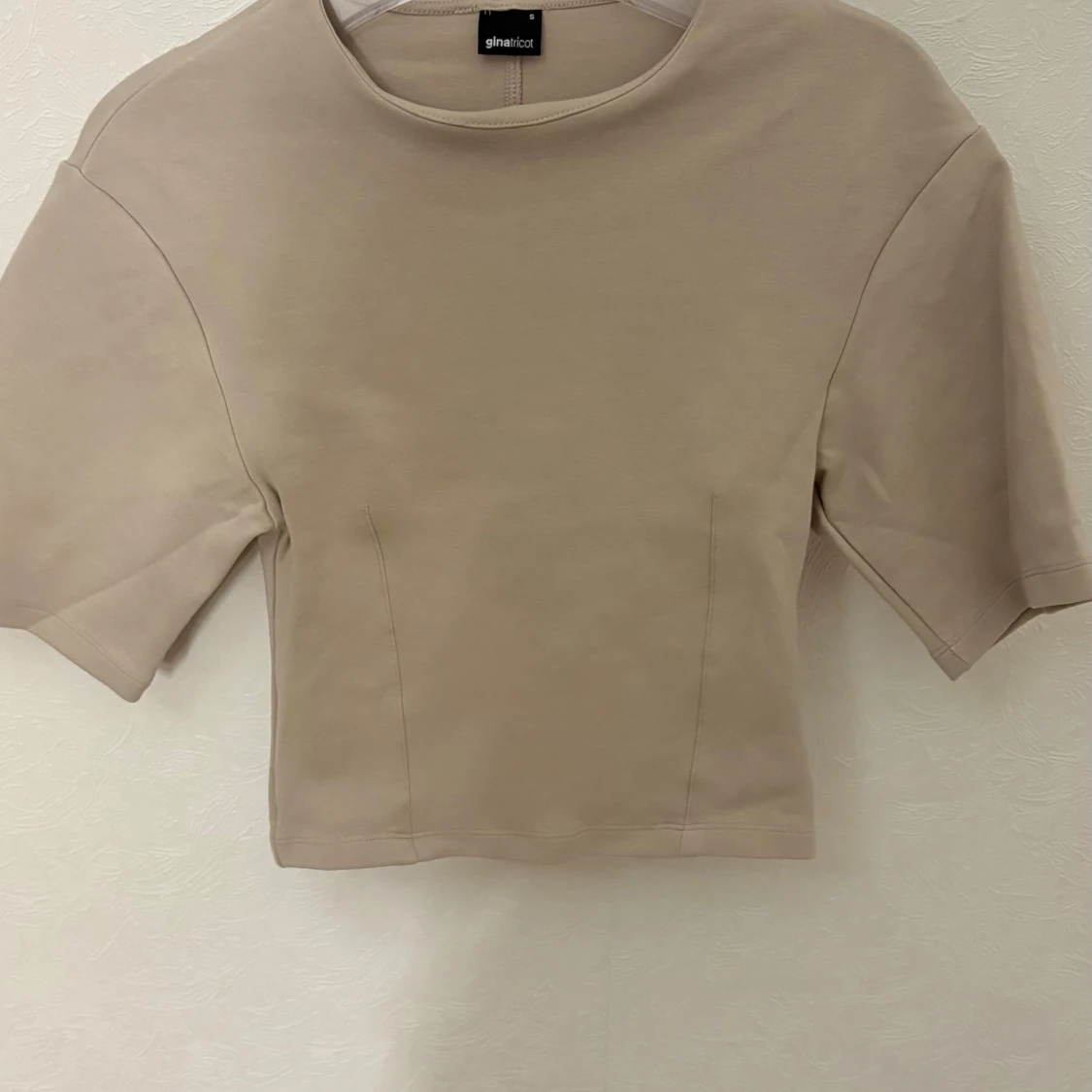 Säljer en stilren beige croppad topp från Gina Tricot. Toppen har korta ärmar, rund halsringning och är sydd i ett mjukt bomullsmaterial. Enkel och clean design som är lätt att matcha med olika outfits. Otroligt fin och aldrig använt!!