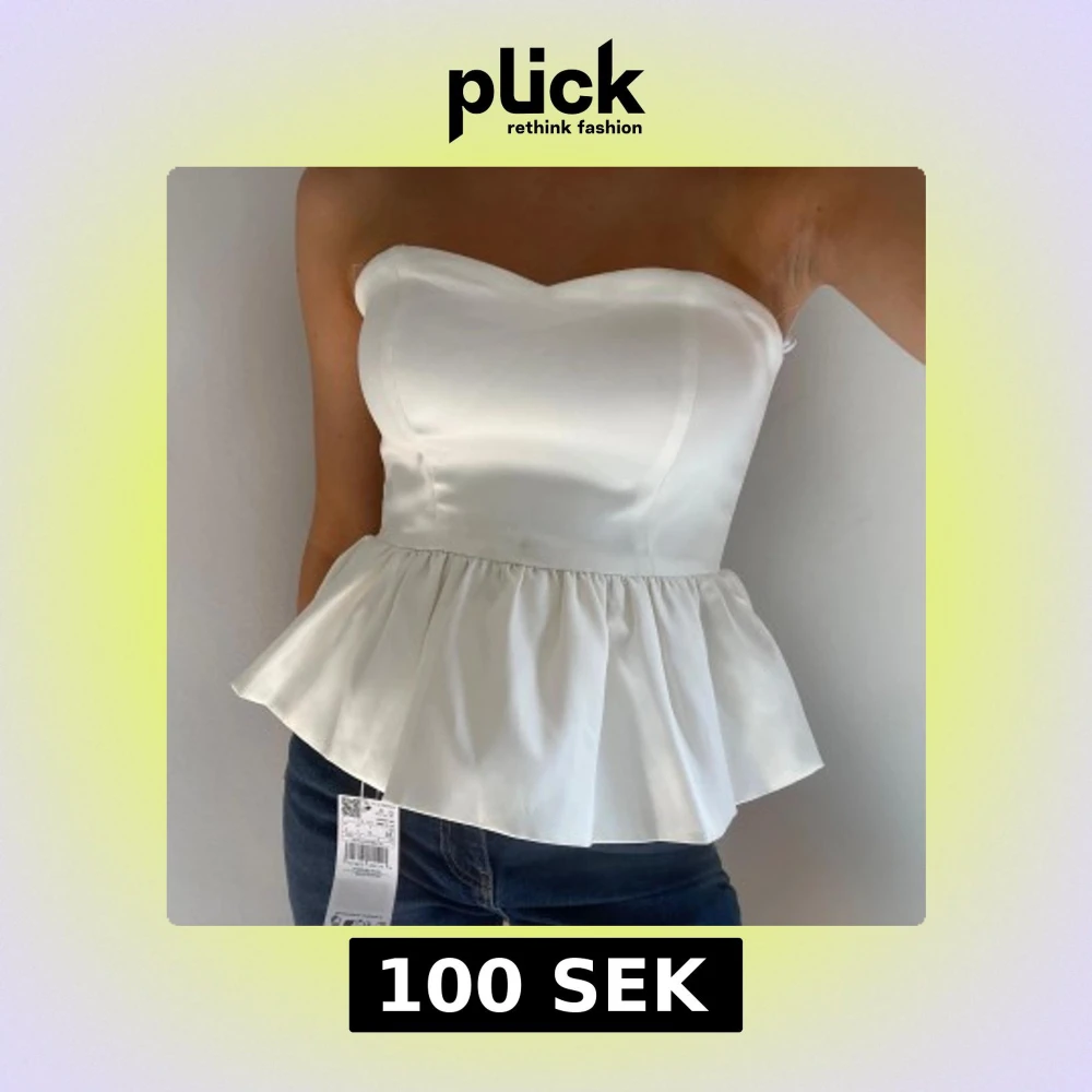 Supersnygg glansig vit topp med peplumvolang nedtill.đ€ Toppen har Ă€ven en inbyggd âBHâ. Den har vissa skavanker som alla syns pĂ„ bilderna.