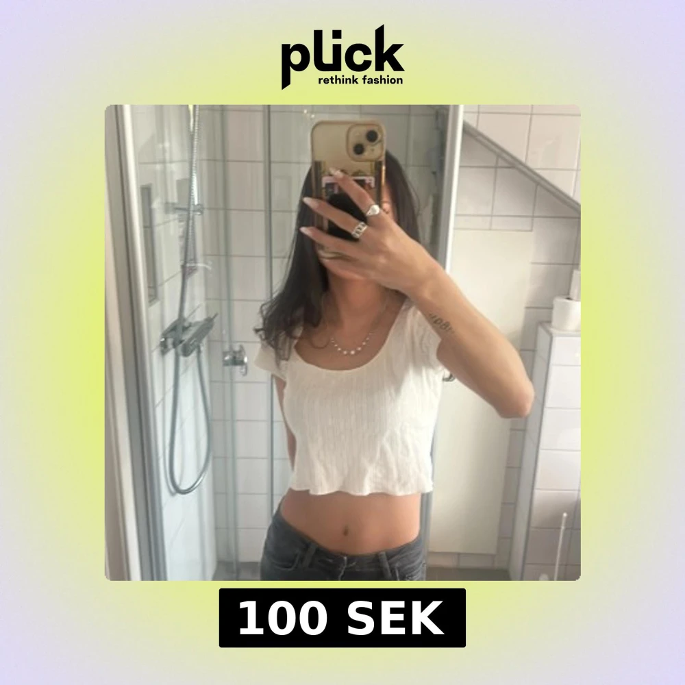 Säljer en stilren vit ribbad croppad topp med korta ärmar. Superfint till sommaren:)