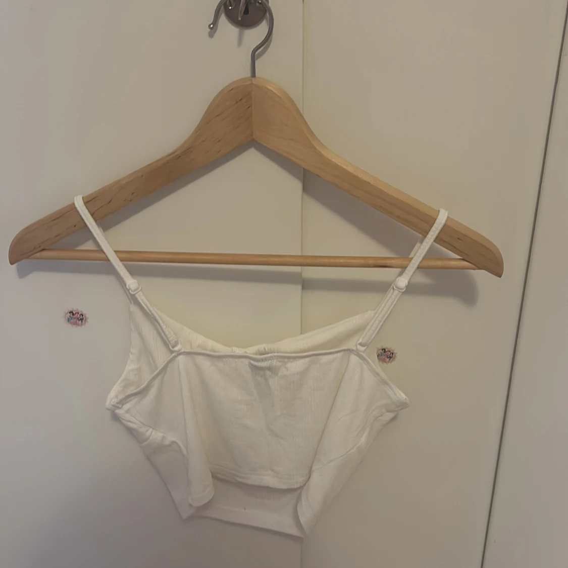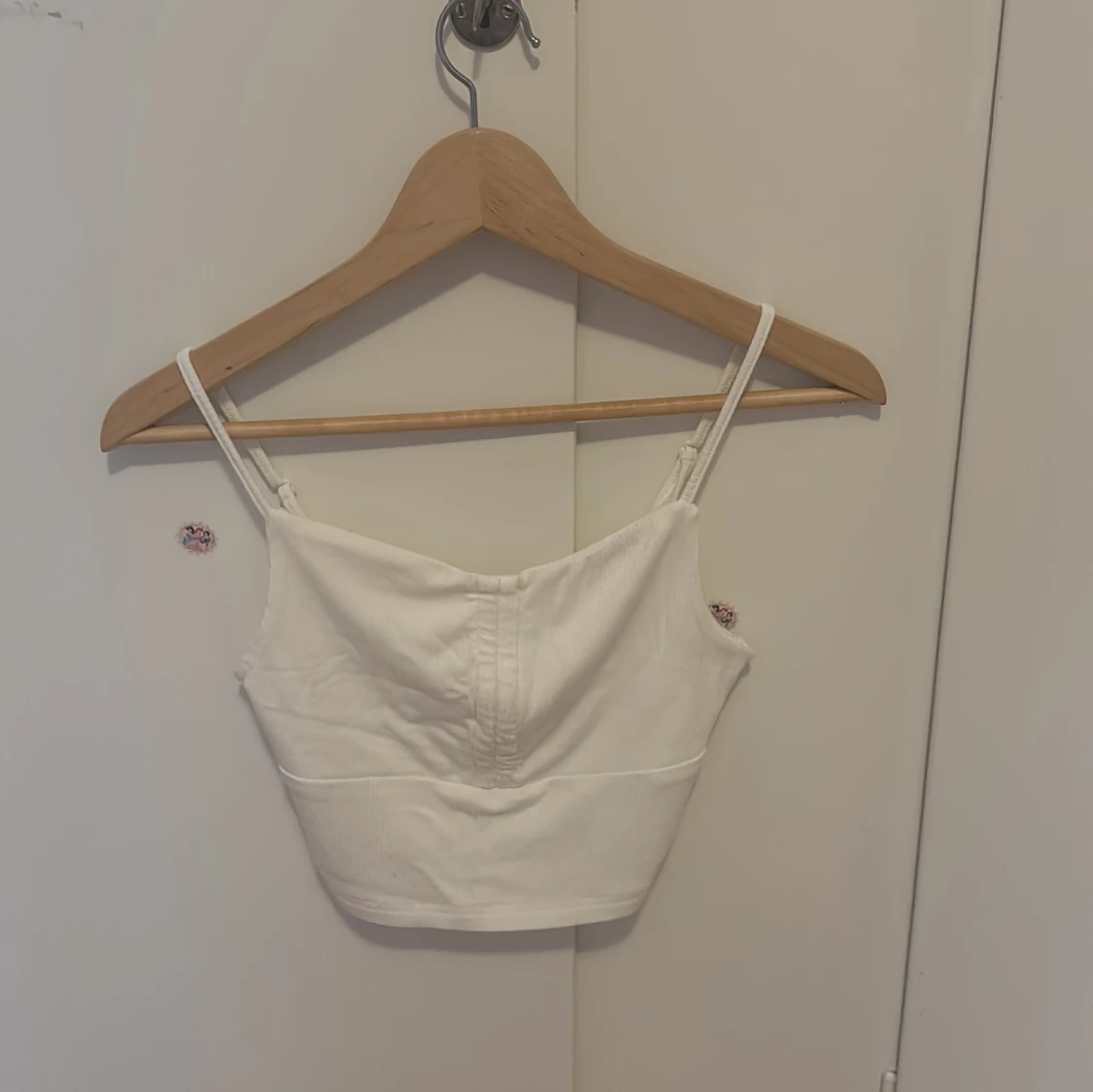 Säljer en enkel och stilren vit croppad linnetopp från SHEIN. Toppen har smala axelband(adjustable )och en rak skärning, perfekt att matcha med jeans eller kjol. Materialet är mjukt och bekvämt.