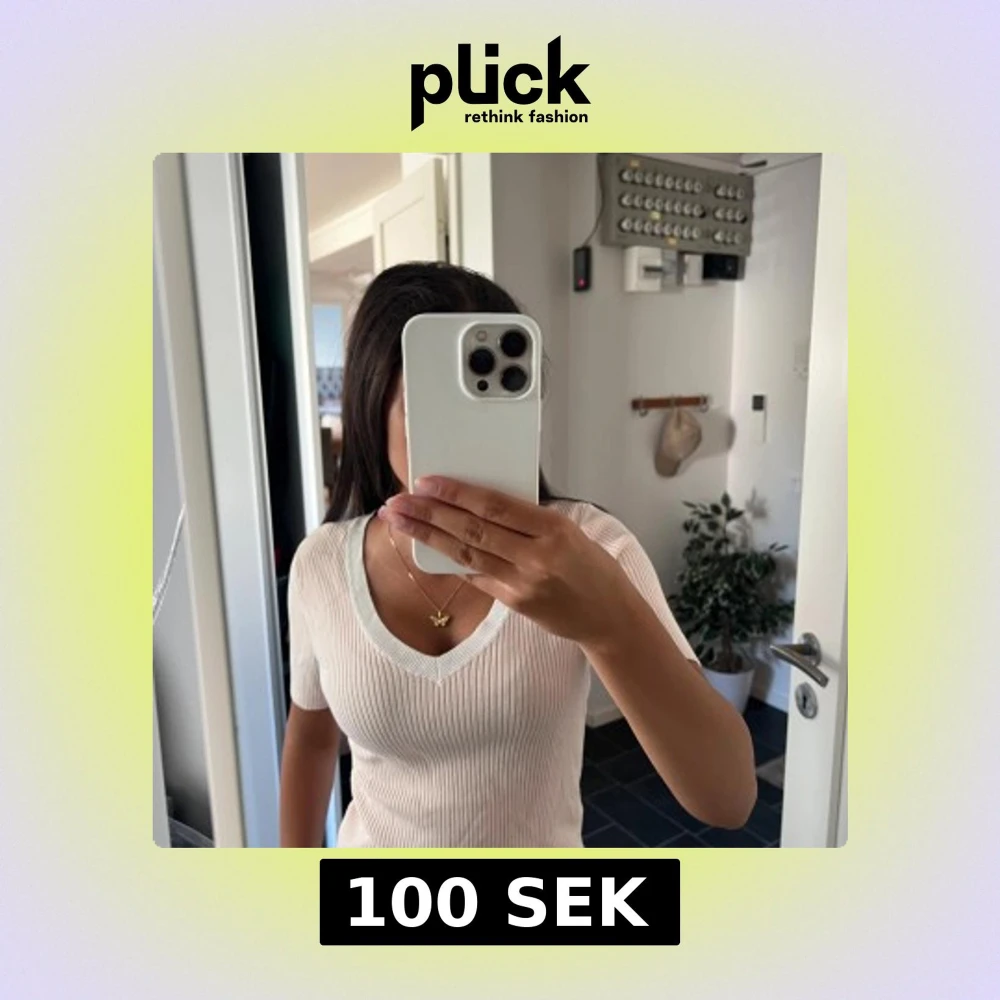 Säljer en ribbad, ljusvit topp från Divided med v-ringning och korta ärmar. Toppen har en slim passform och är tillverkad i mjuk bomullsmix. Perfekt till jeans eller kjol för en clean och fräsch look.