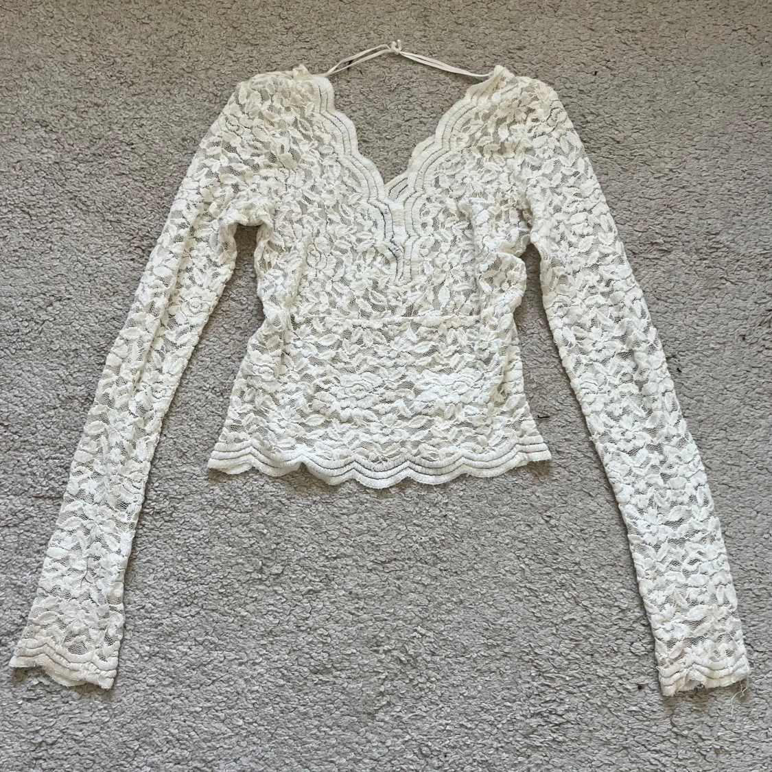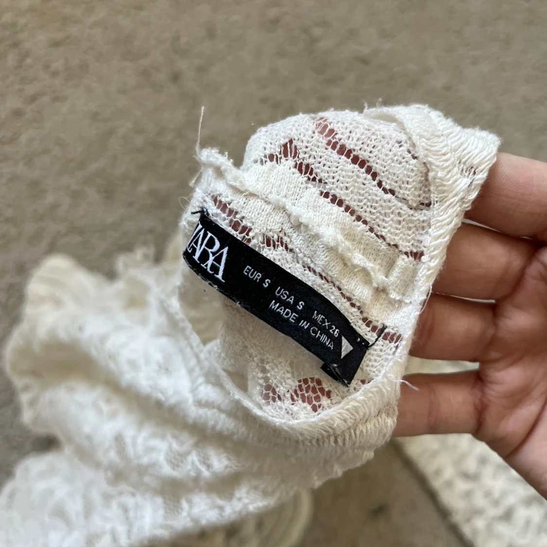 Superfin vit spetsblus från Zara med lång ärm och v-ringad hals. Säljer pga att jag inte använder den, har sytt pyttelite i vringningen för jag tyckte den va för v-ringad men man tänker inte på de🥰