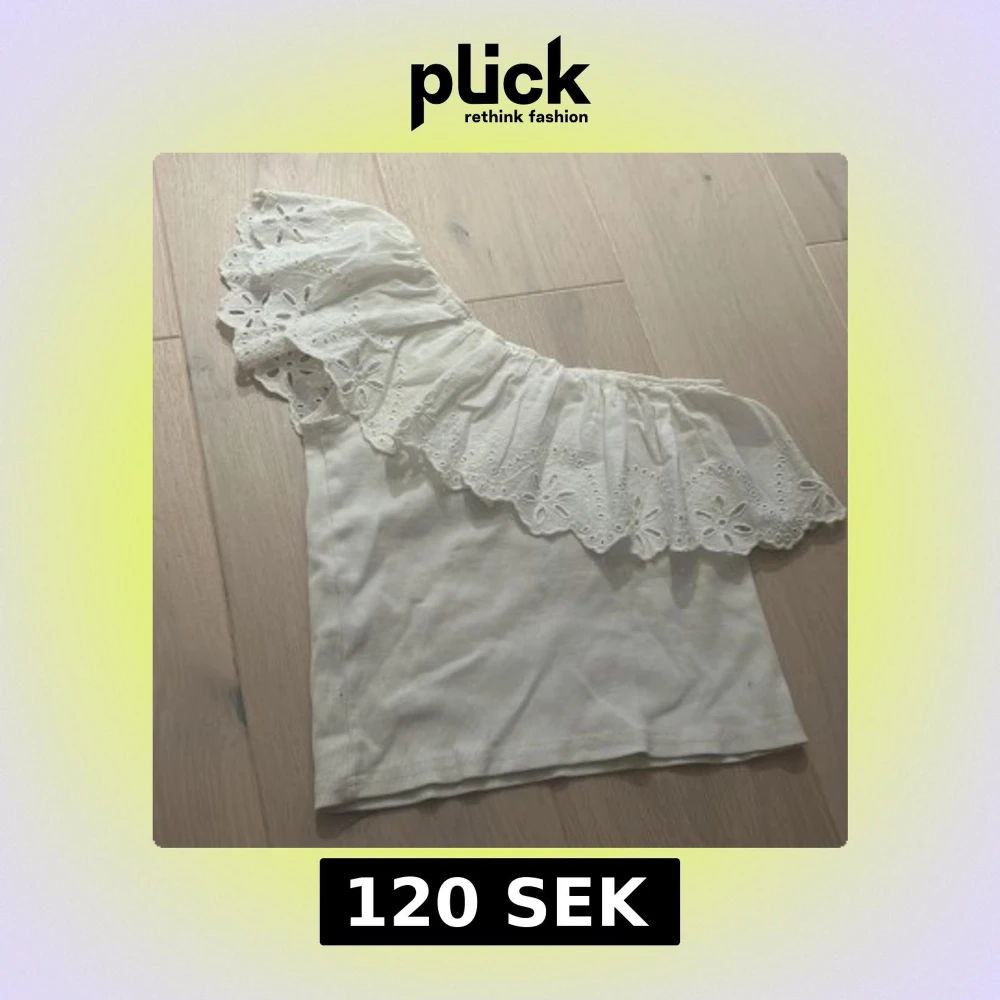 Superfin vit oneshoulder topp med bred volangkant i broderad spets. Toppen är ärmlös och har en romantisk känsla med blommiga broderidetaljer längs volangen. Perfekt för varma dagar och ger en söt och trendig look. Den säljs inte längre!!!