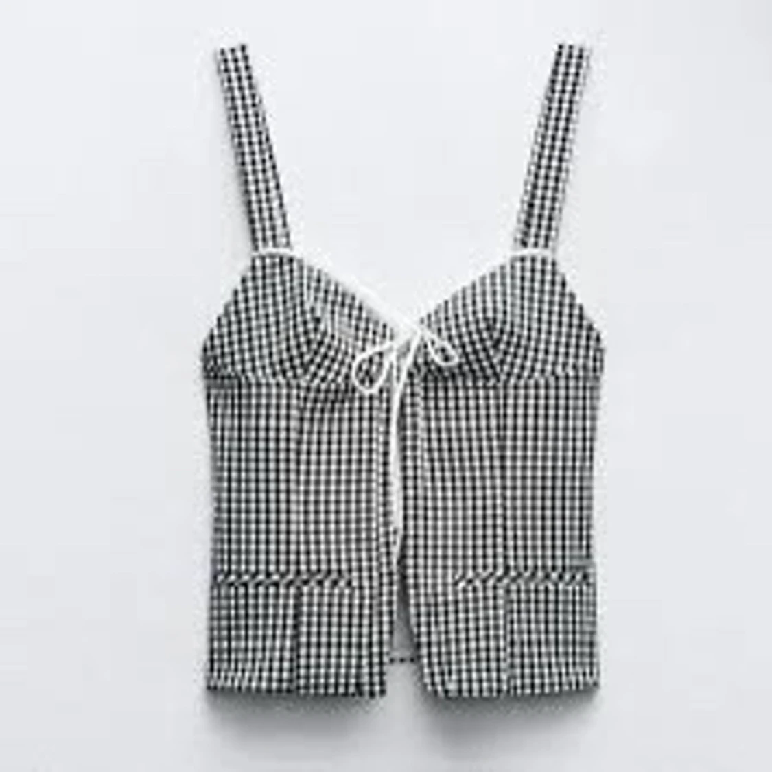 Snygg svartvit rutig topp med smala axelband och söt knytning framtill. Perfekt för sommardagar och ger en chic look. Toppen har en figurnära passform och är superbekväm att bära. Har prislappen kvar