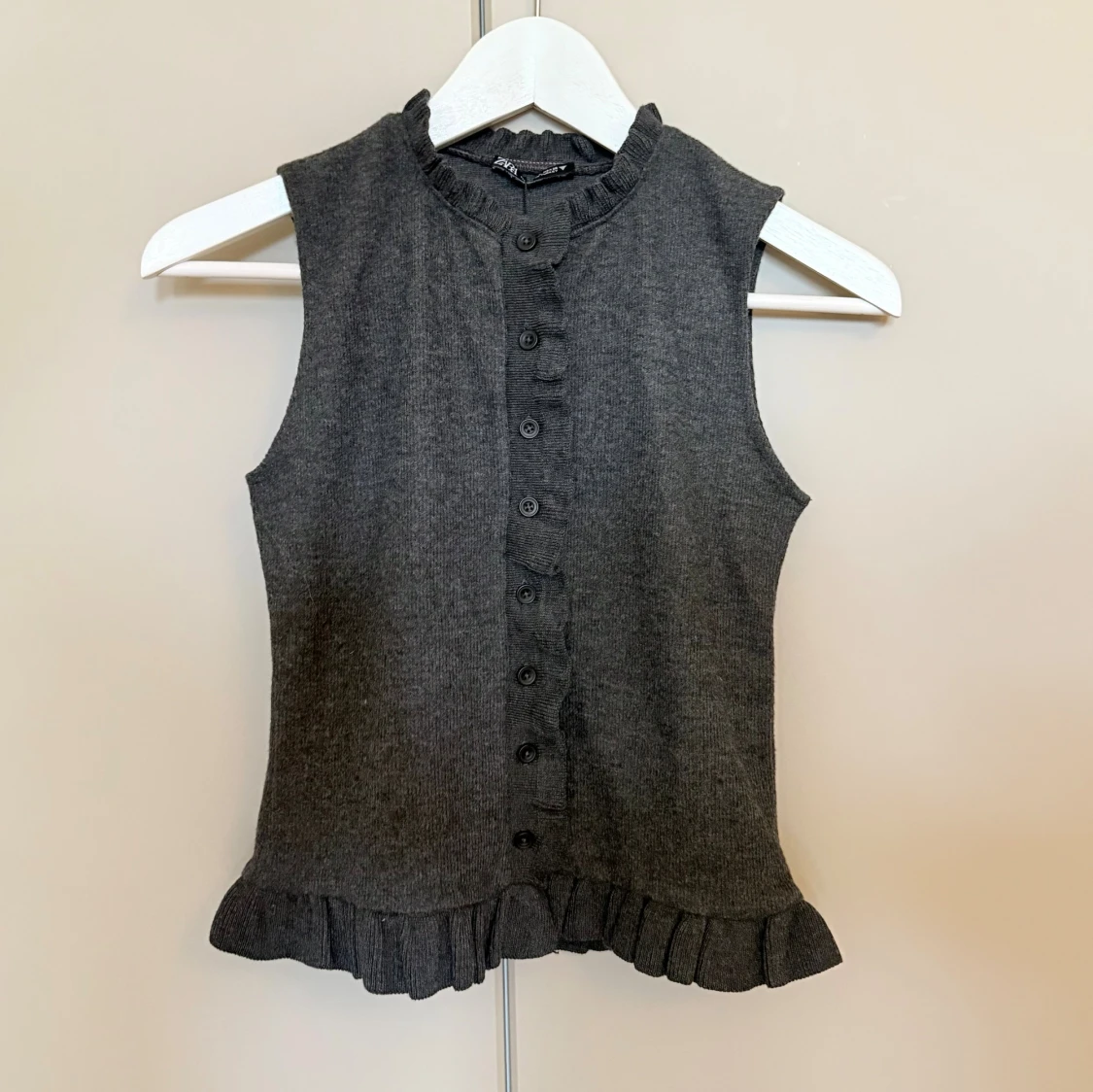 En helt ny & oanvänd supersöt volangtopp från Zara. Stl S och stickat material 🌼 perfekt till hösten!