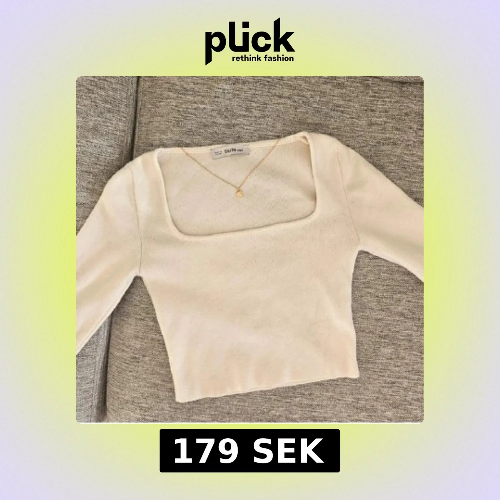 Krämvit finstickad topp med trekvartsärm, från chiquelle. Fint skick! Köpt för 450 kr, säljer för 179! 🫶