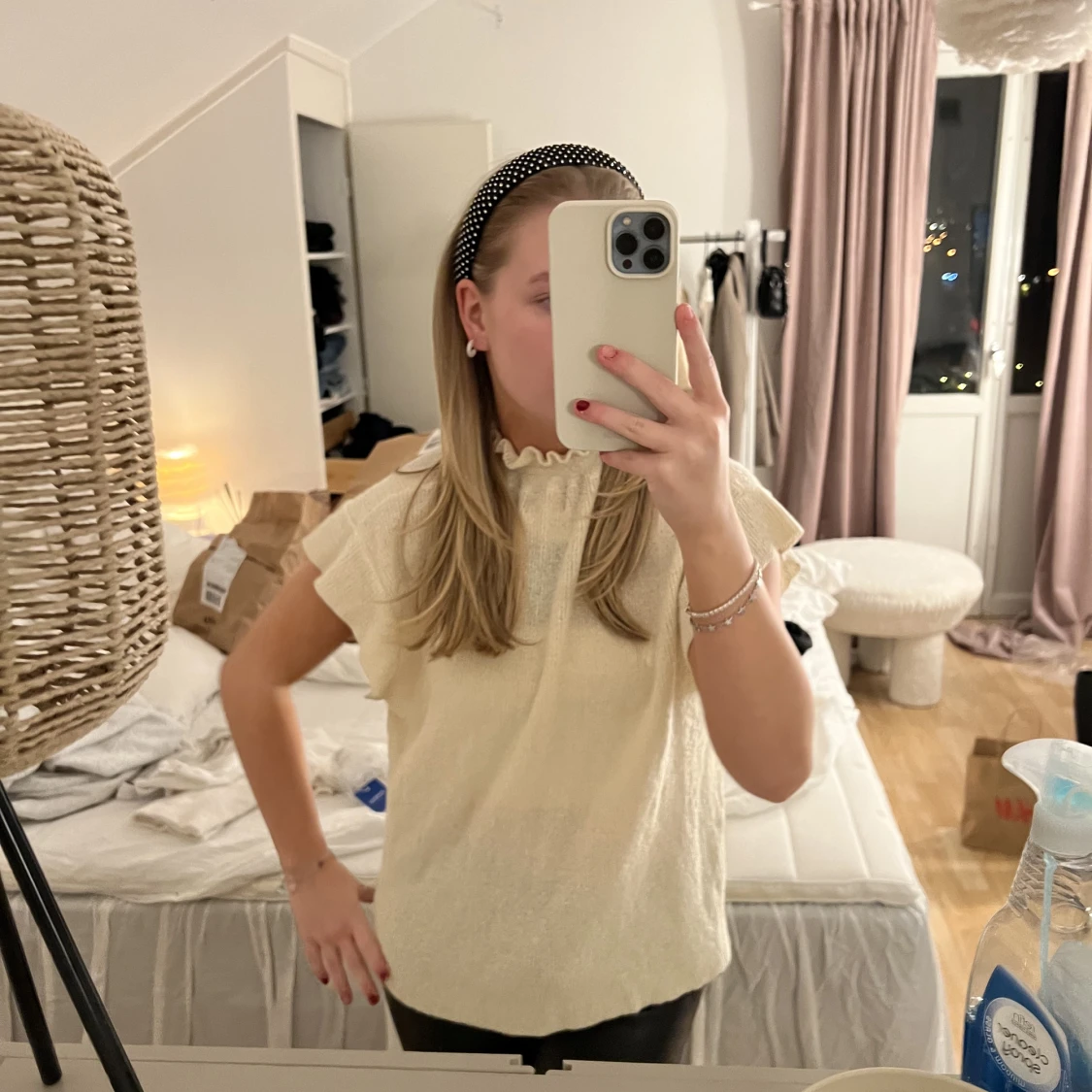 Säljer denna fina stickade toppen, i en vit/beige färg. Super bra skick❤️