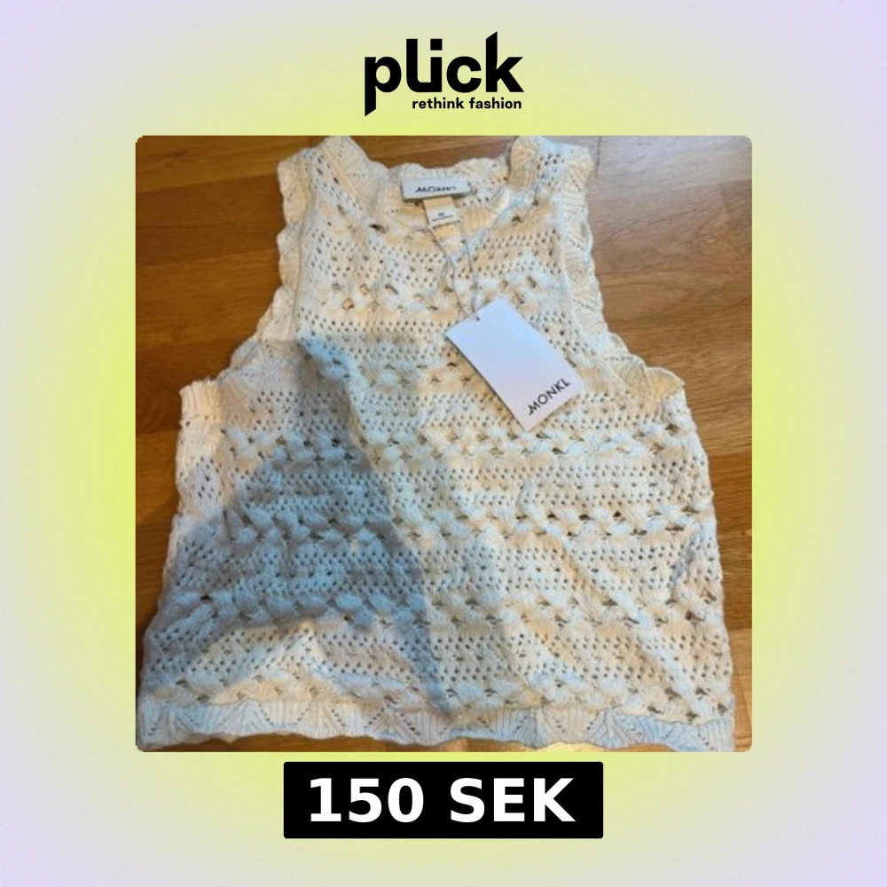 Säljer en söt vit stickad väst från Monki. Västen har ett fint hålmönster och är perfekt för lager-på-lager. Den är ärmlös och har en rund halsringning. Aldrig använd och prislapp kvar 🤍