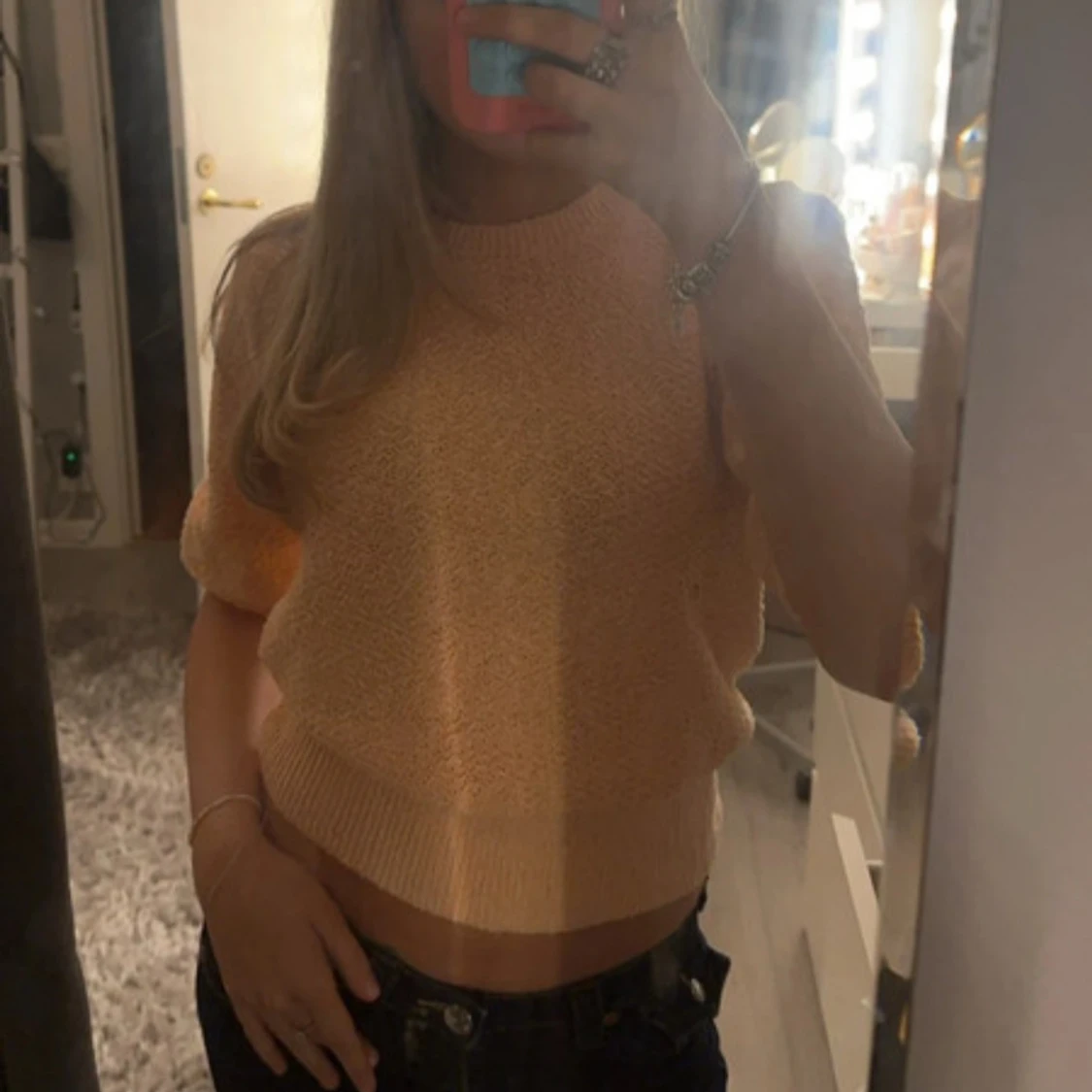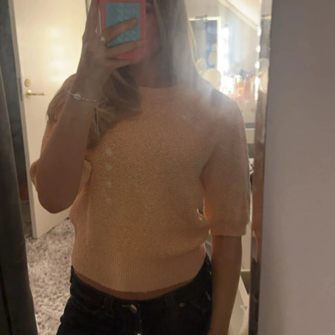 Säljer en söt aprikos färgad tröja med korta ärmar. Aldrig använd
