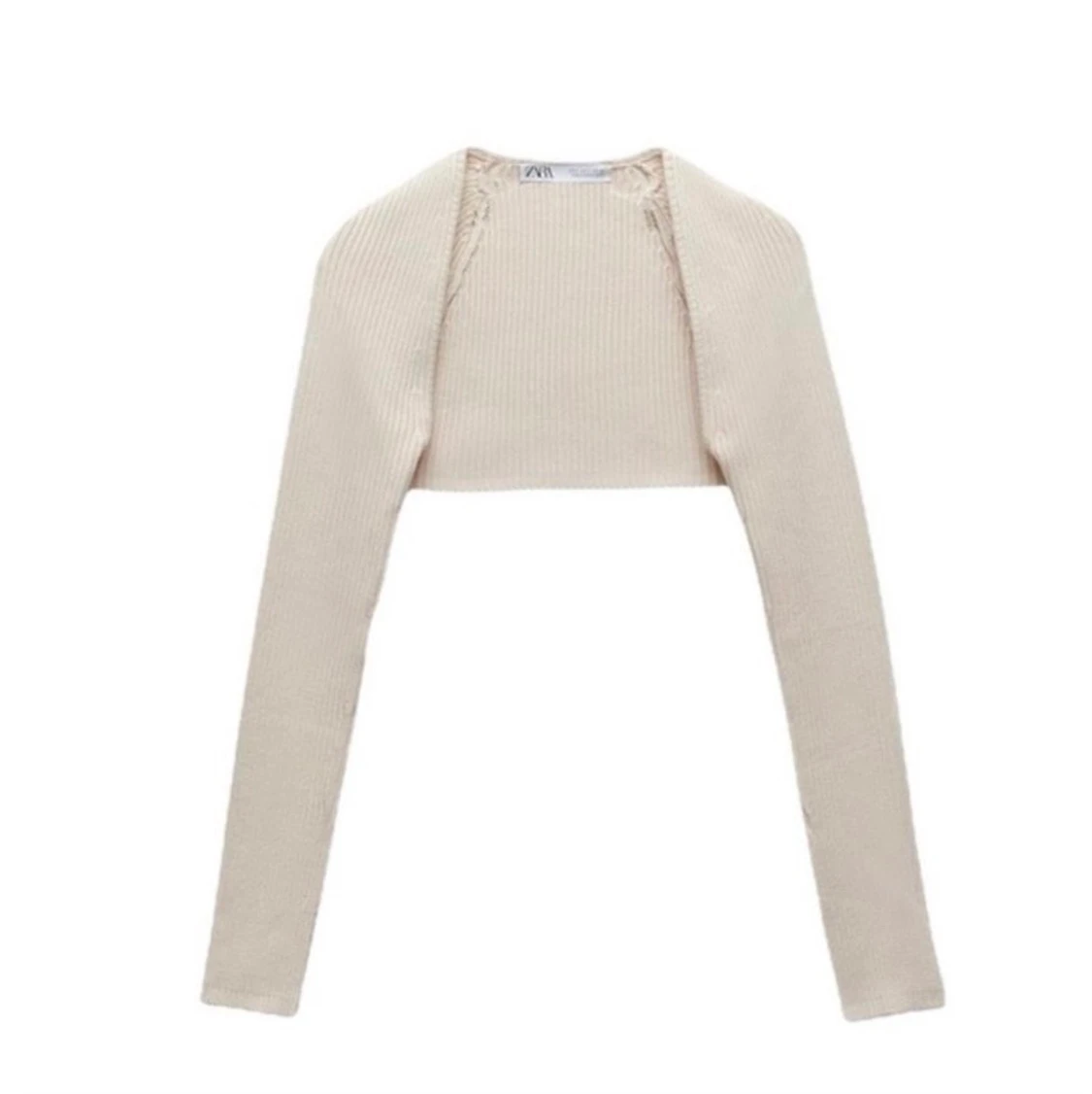 En super cool beige bolero från Zara med slitsar i armarna⭐️🤩 använd endast en gång och är i super fint skick!!!