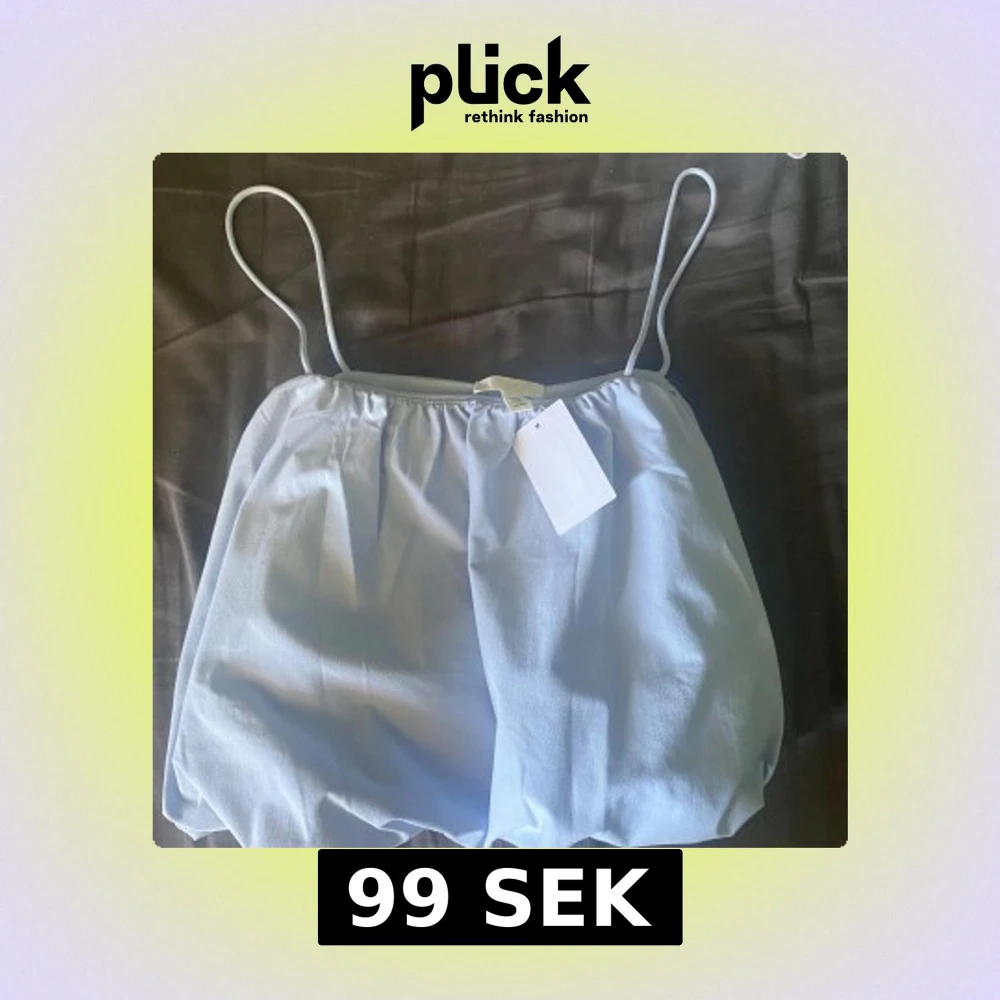 Supersöt ljusblå linnetopp från H&M med tunna axelband och lätt puffig form. Toppen har en luftig och flowy känsla, perfekt för varma dagar. Materialet är mjukt och har en lätt glans. Enkel och stilren design som är lätt att matcha.