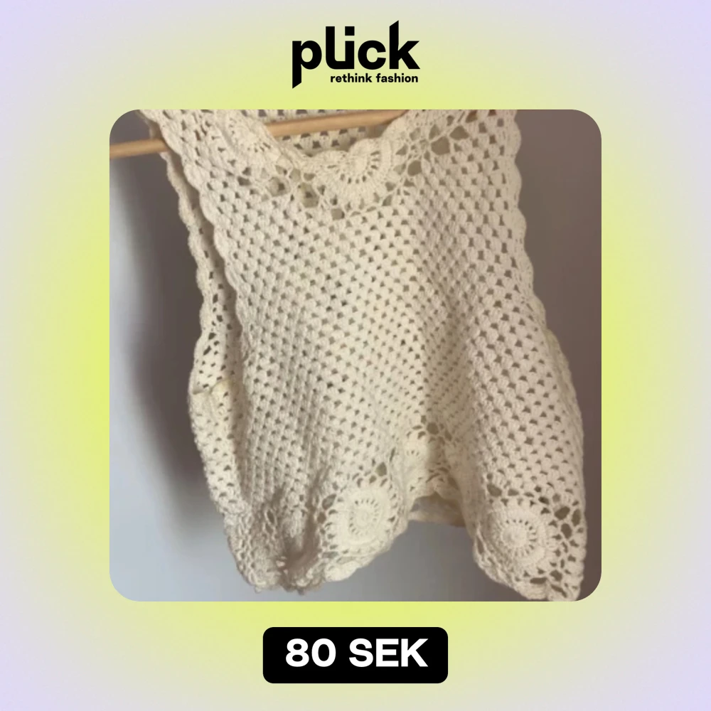 Vit stickad topp, vet ej storlek men troligen S. Bra skick. Finns i Stockholm men kan fraktas, pris kan diskuteras