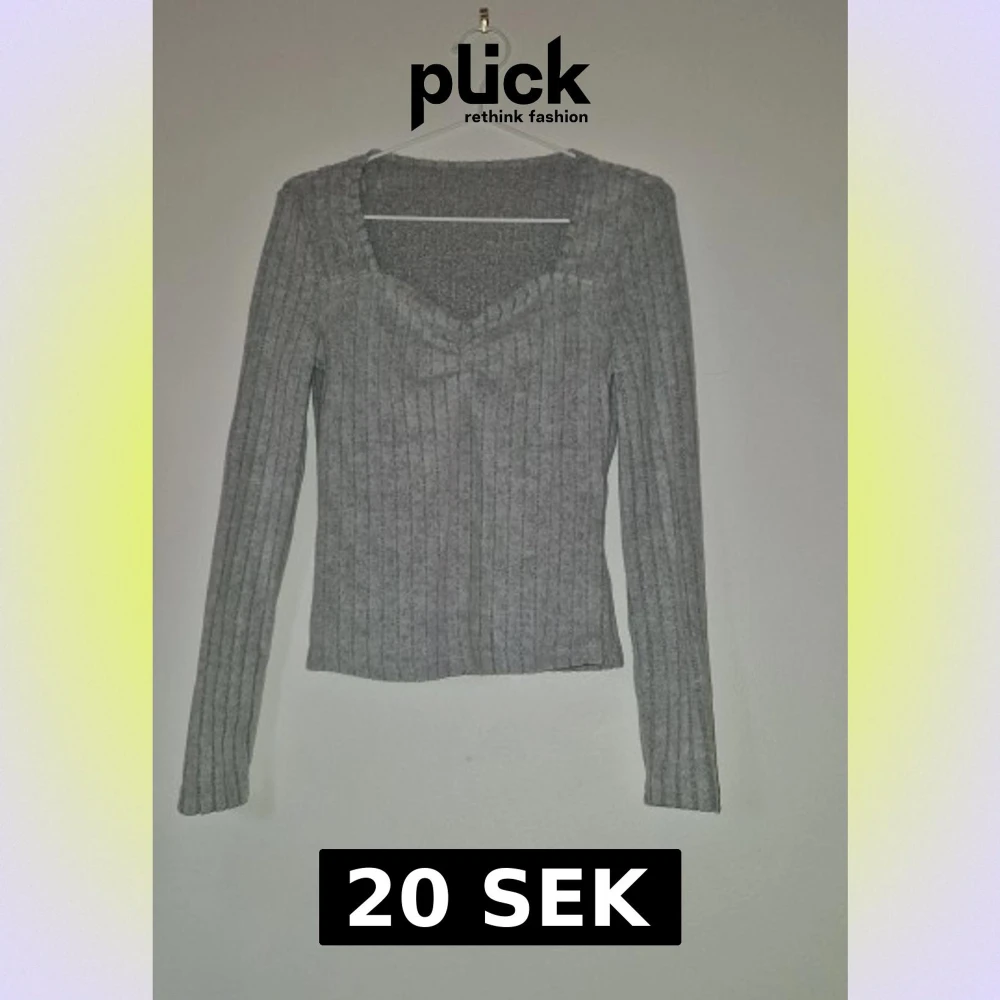 Snygg grå stickad tröja med ribbad struktur och v-ringad hals. Modellen är långärmad och har en smickrande passform som sitter normalt. Perfekt att matcha med jeans eller kjol för en chill look.