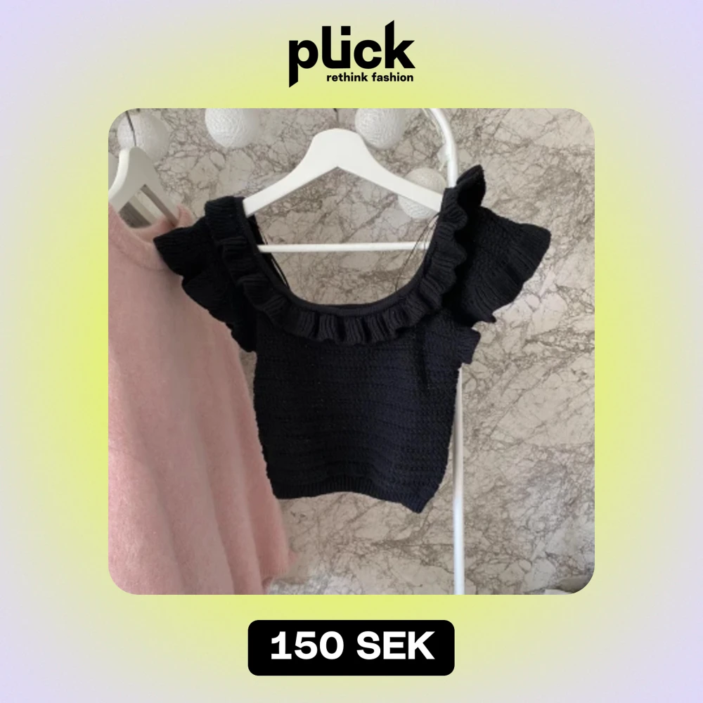 Säljer en superfin svart stickad topp med volangdetaljer. Perfekt för både vardag och fest!