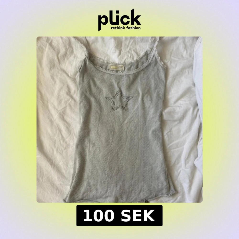 Ljusgrått spetslinne med en stjärna i strass✨ Superfint men kommer inte till användning! Hittar ingen storlek men skulle säga att det är en S:)