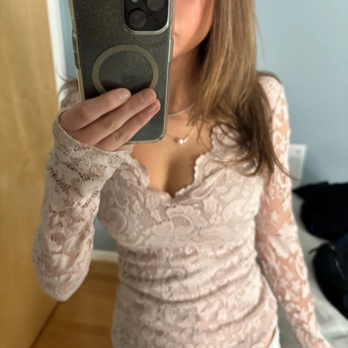 Såå fin långärmad rosa spetstopp som är v- ringad. Bra skick förutom att höger ärmen har fått ett hål vid handleden men för övrigt är tröjan i jätte fint skick💗💗