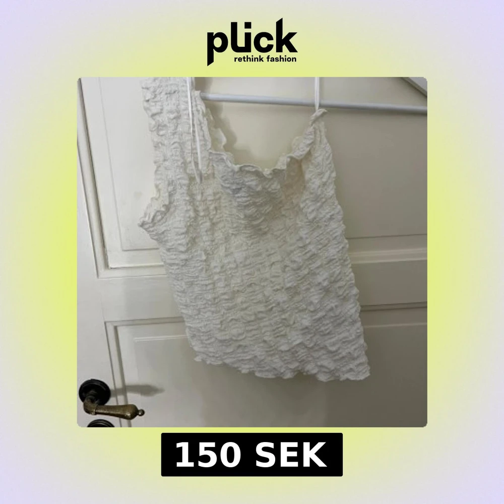 Säljer en söt vit axelbandslös topp med volangdetaljer. Toppen har en smockad design som ger en fin textur och passform. Perfekt för sommarens varma dagar.