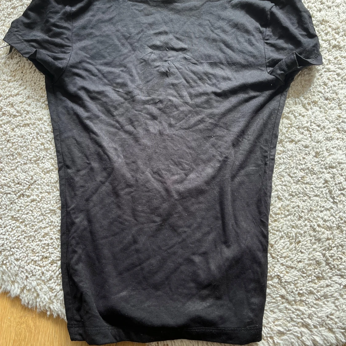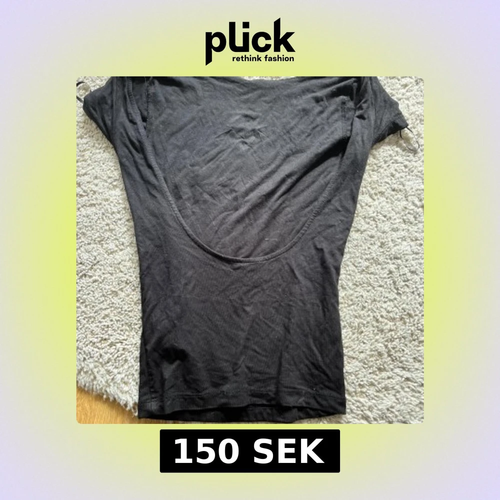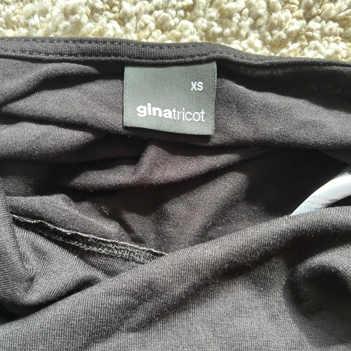 Svart, tight topp från Gina Tricot i mjuk bomull med korta ärmar och en djup, rundad rygg. Perfekt för att skapa en stilren och enkel look. Storlek XS.