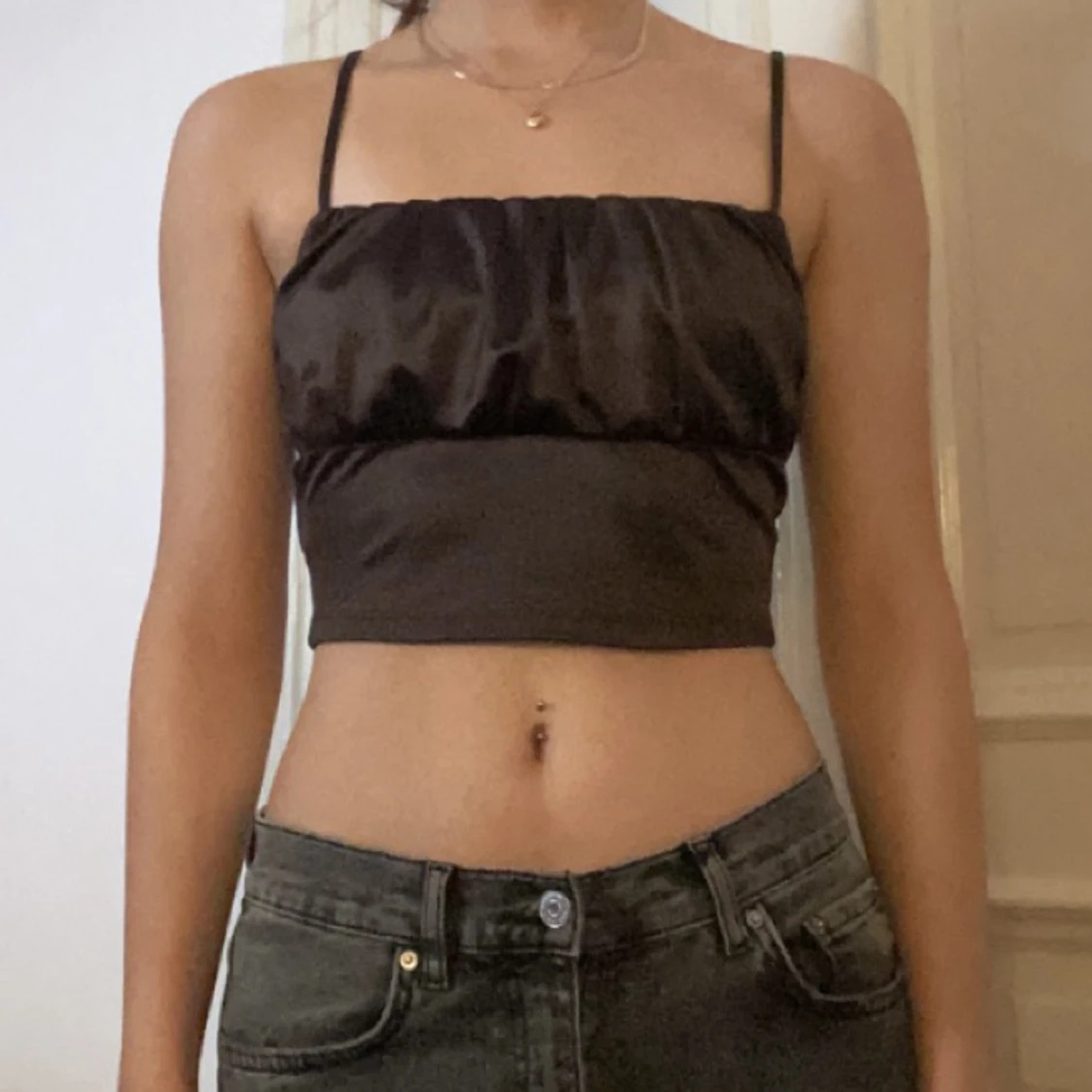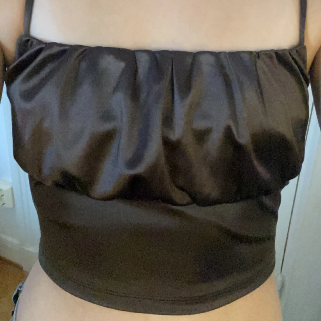 brun topp i silkesaktikt material köpt på hm