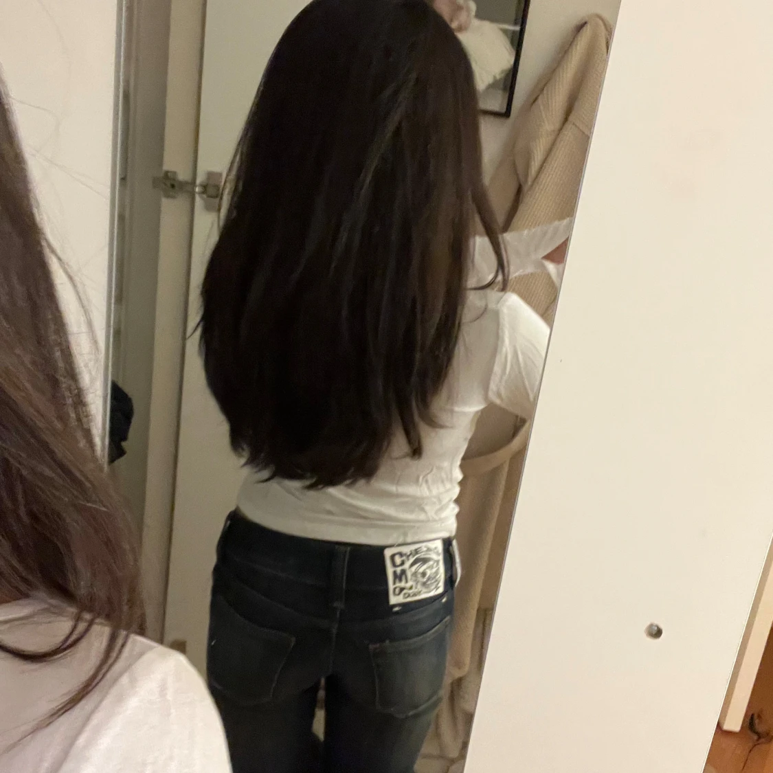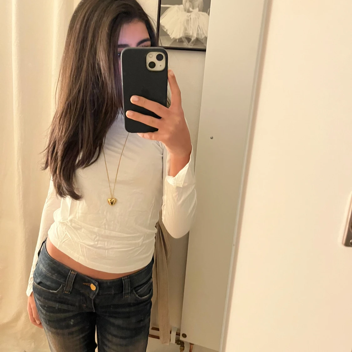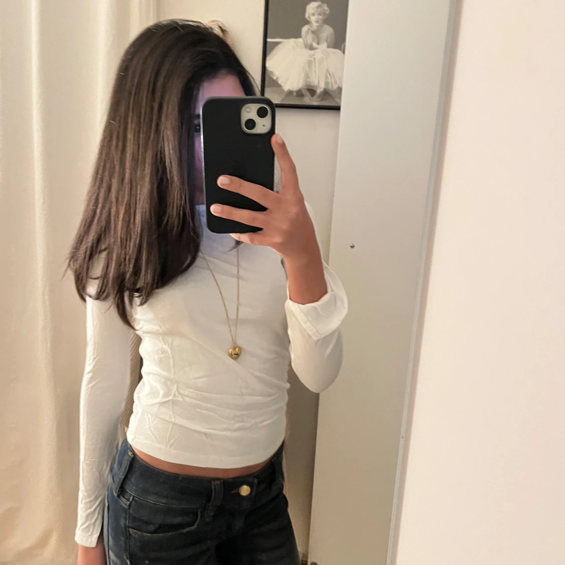 Säljer en vit långärmad tröja med slits ärm. Den har aldrig kommit till användning för den är för liten. Skriv för frågor eller köp💕