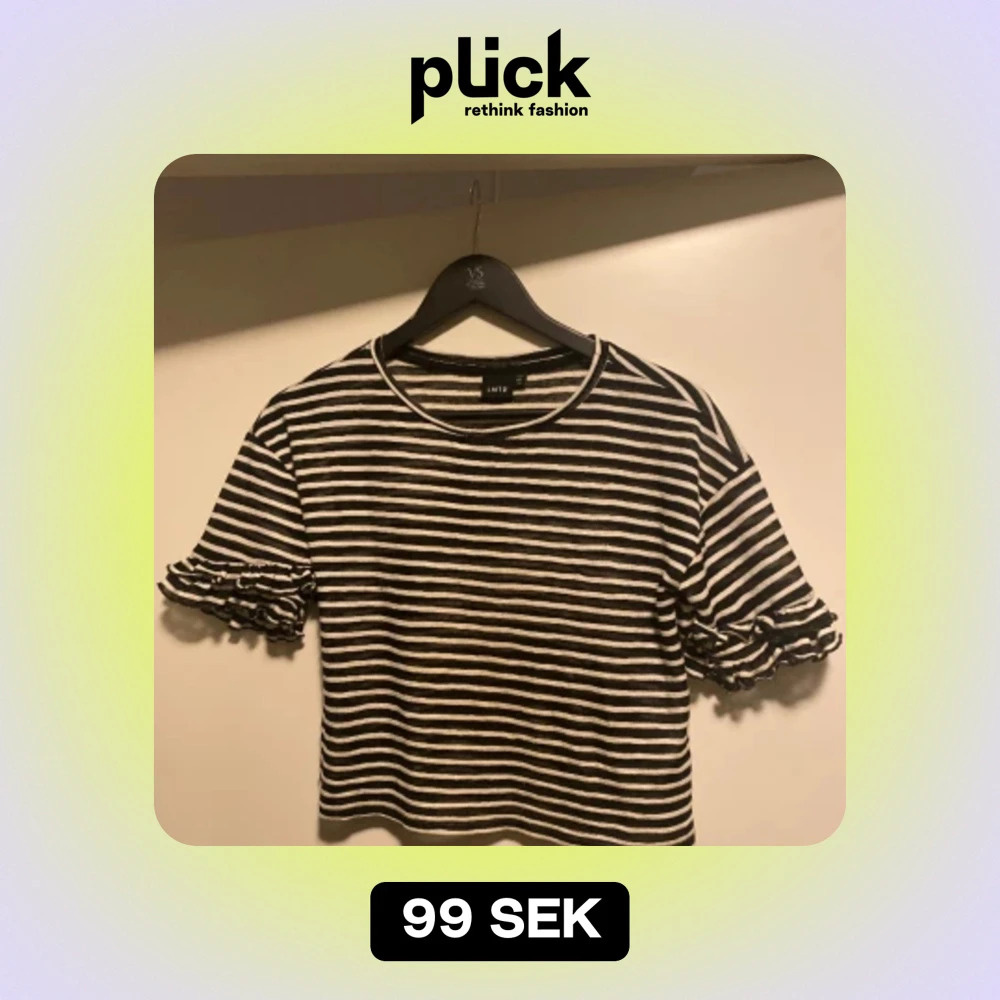 Jättefin randig topp i tunt material med volang ärm. Storken är ganska stor för att vara 146 /152 så passformen är mer som en XS. Mycket bra skick!