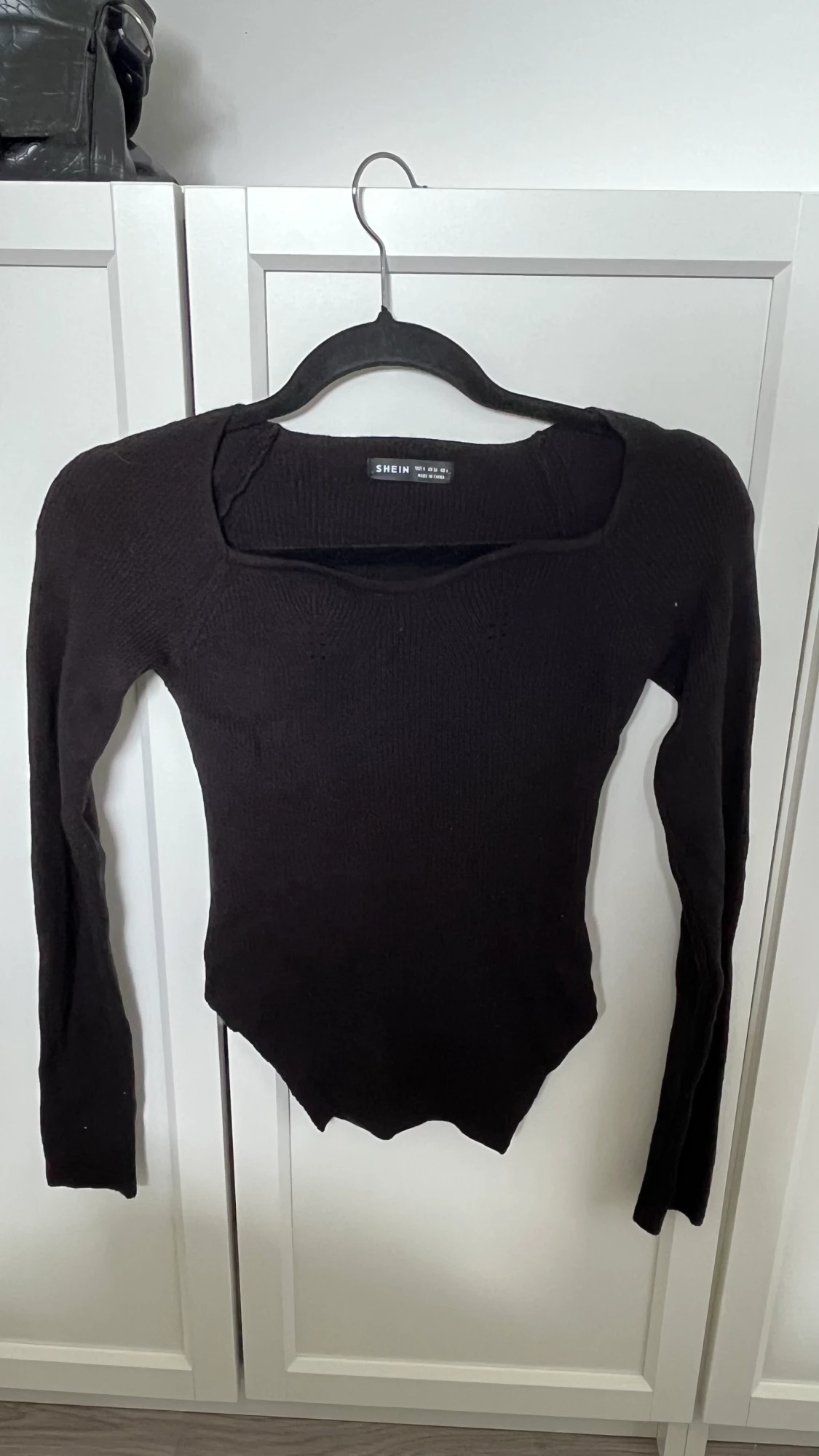 Super snygg stickad topp ifrån Shein! Aldrig använd, så som ny! Slitsar i sidorna. Ganska liten i storleken men den är väldigt stretchig, så passar xs/s skulle jag säga! Super härligt material! Köparen står för frakten🩵