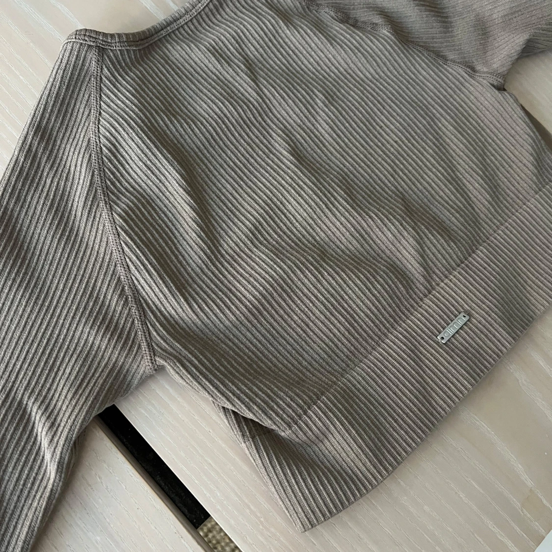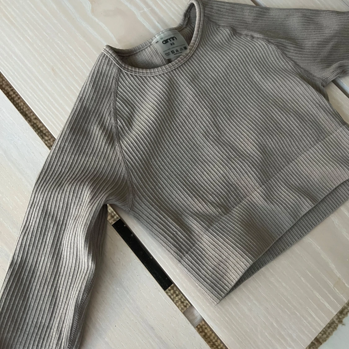 Säljer en beige ribbad croppad topp från Aimn. Toppen har långa ärmar och en stilren design som passar perfekt för en trendig look och till träning. Perfekt för dig som vill ha något bekvämt och snyggt samtidigt. Mycket bra skick!!