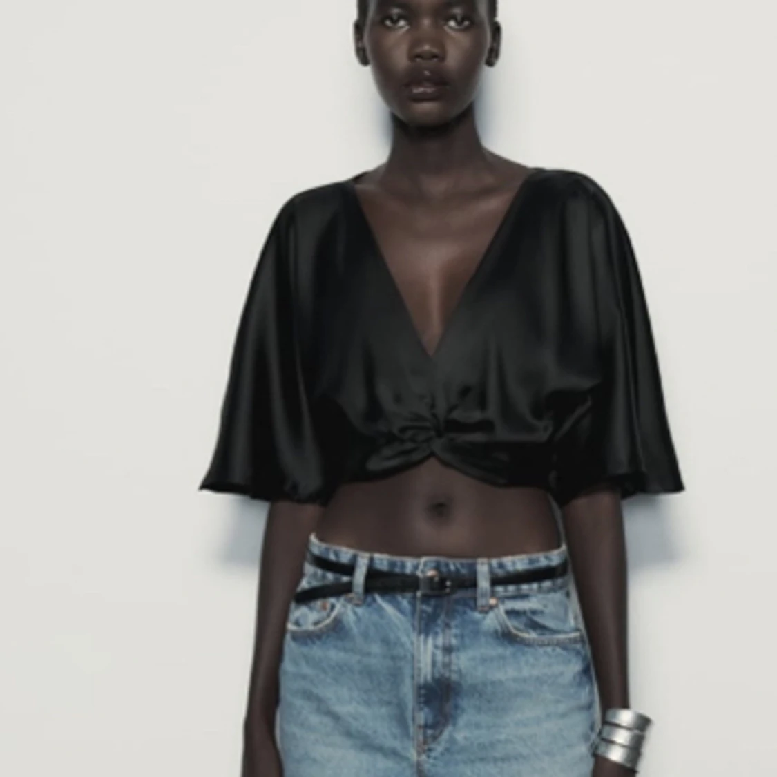 Svart topp med knytning. Fullpris 299kr. Liten i stl, jag brukar oftast ha S/M och denna passar bra.