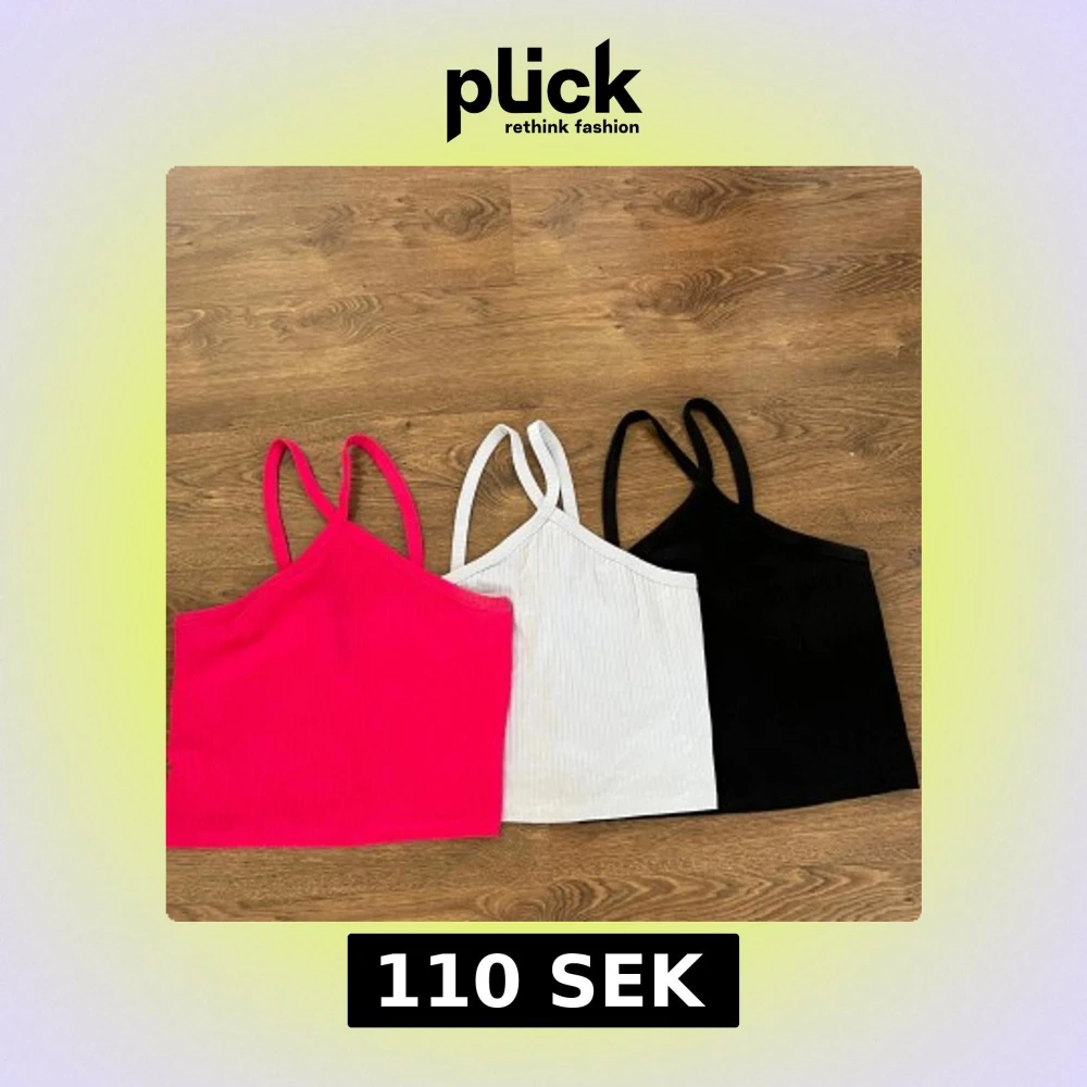 Säljer nu tre stycken ribbade linnen med korsade axelband. Ljusblå, rosa och svart. Alla för 110kr tillsammans. Från Gina Tricot. Storlek XL men passar också L. Defekt på det rosa linnet men går bort i tvätten. Passar perfekt nu till sommaren☀️💗