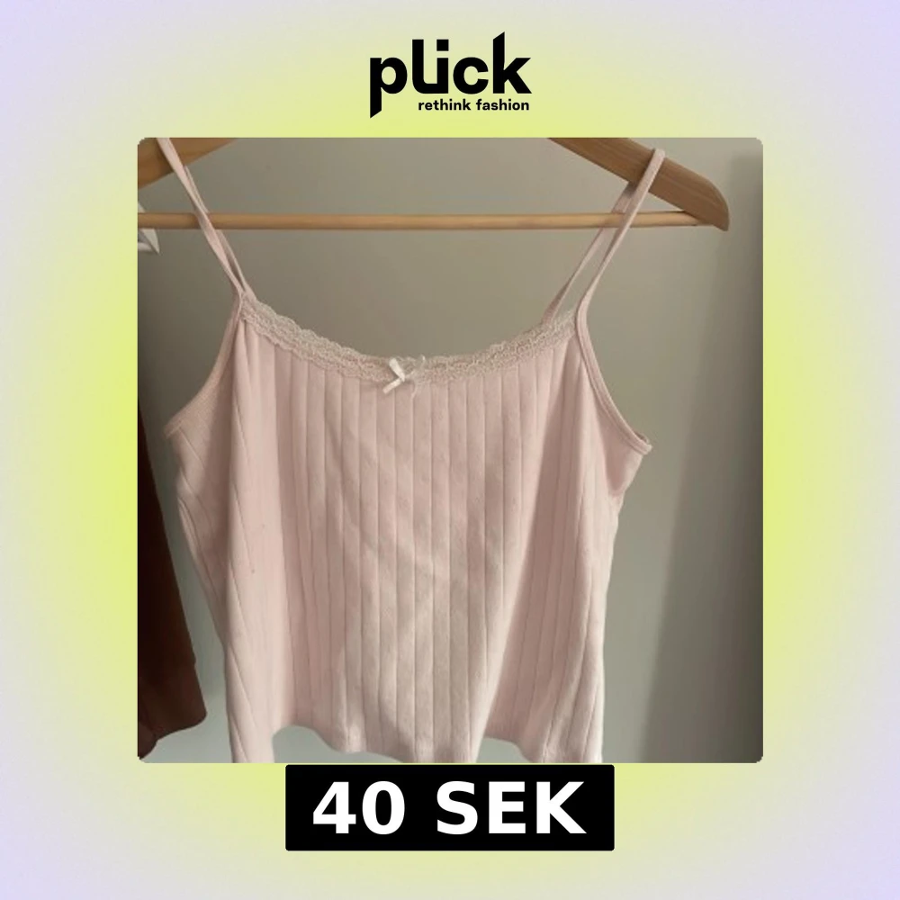 Söt ljusrosa linnetopp med smala axelband och ribbad struktur. Toppen har fina spetsdetaljer längs halsringningen och en liten rosett framtill. Perfekt för en romantisk look. Från Gina tricot