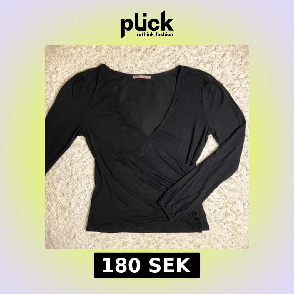 Elegant svart omlottopp från Anna Field med v-ringning och långa ärmar. Perfekt för en stilren look.