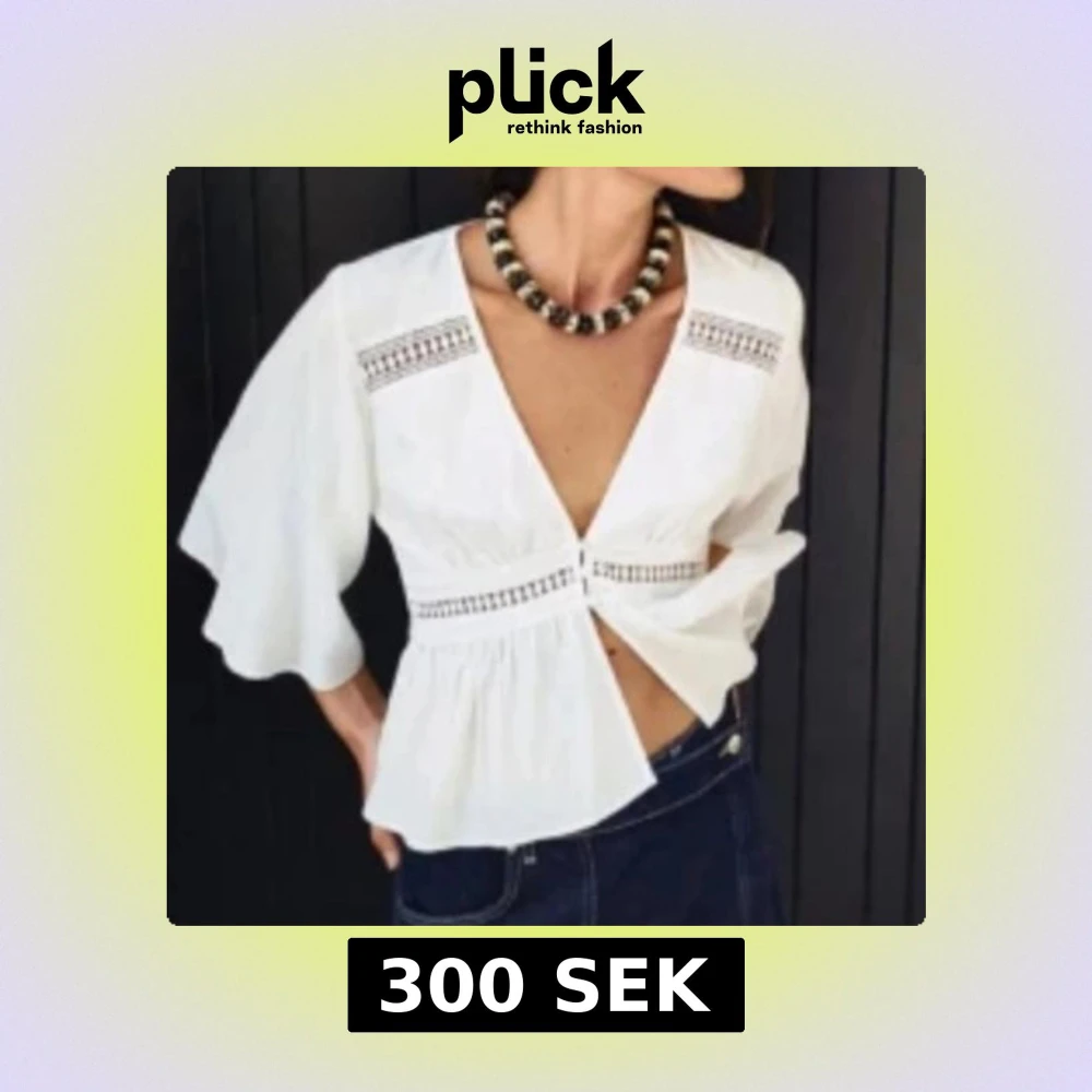 Superfin vit blus från Zara med djup v-ringning, vida trekvartsärmar och dekorativa spetsdetaljer. Toppen är endast testad! 💖