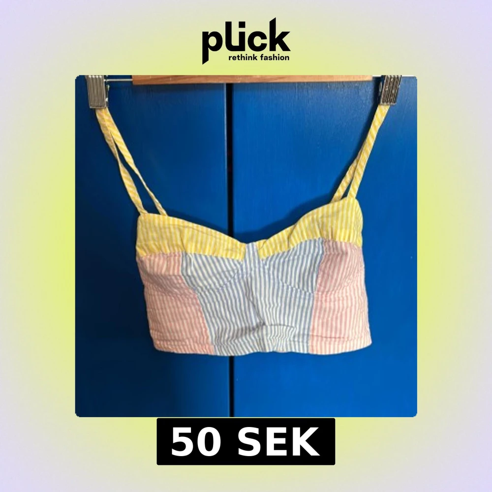Säljer en urgullig färgglad randig croppad topp från Stradivarius. Toppen har smala axelband och en kombination av gula, blå och rosa ränder. Perfekt för sommardagar! 💛💙💗