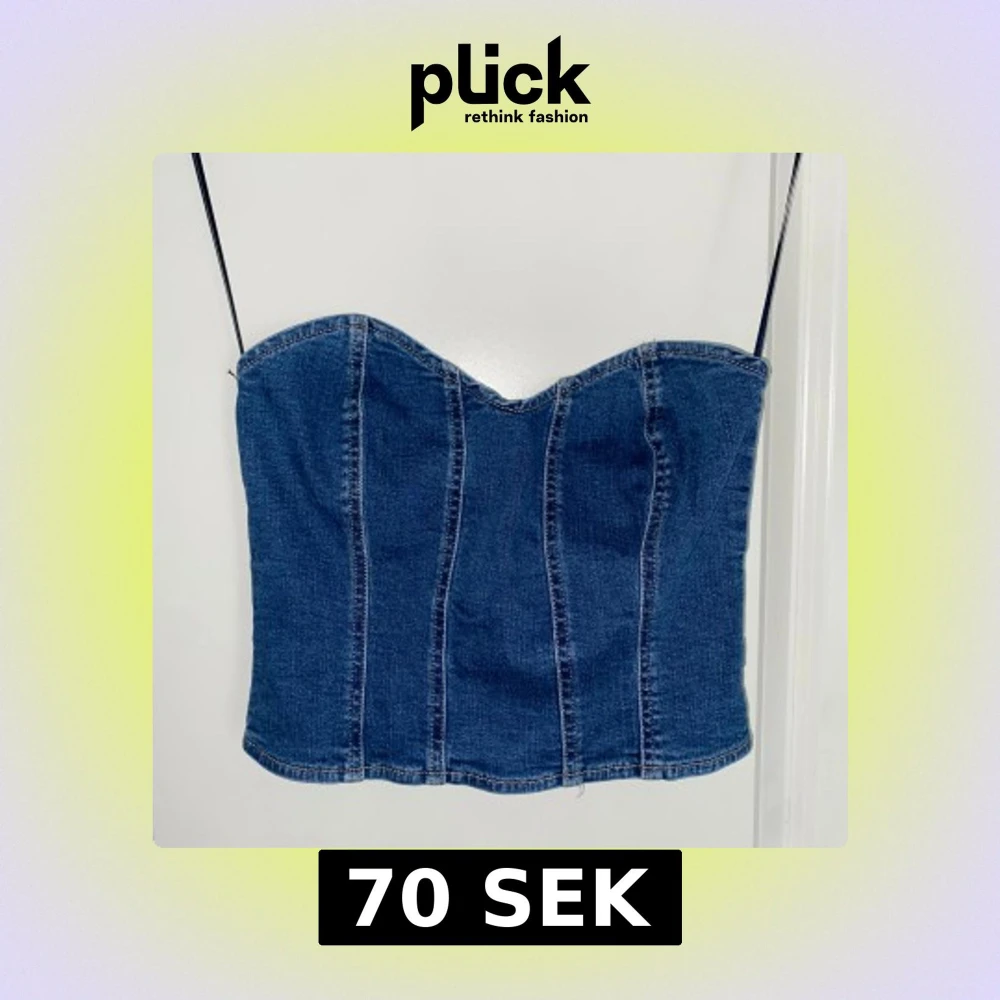 Snygg jeansblå korsett-topp med markerade sömmar. Toppen har en söt hjärtformad urringning och dragkedja bak för enkel påklädning.