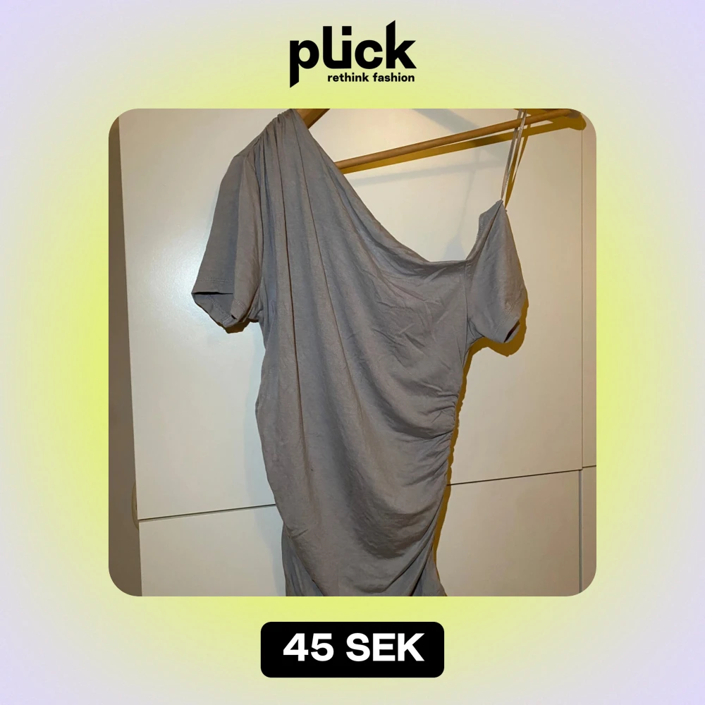En grå tight topp från Stradivarius. Off shoulder på ena armen. Fint skick- använd en gång. Skulle säga passar en S.