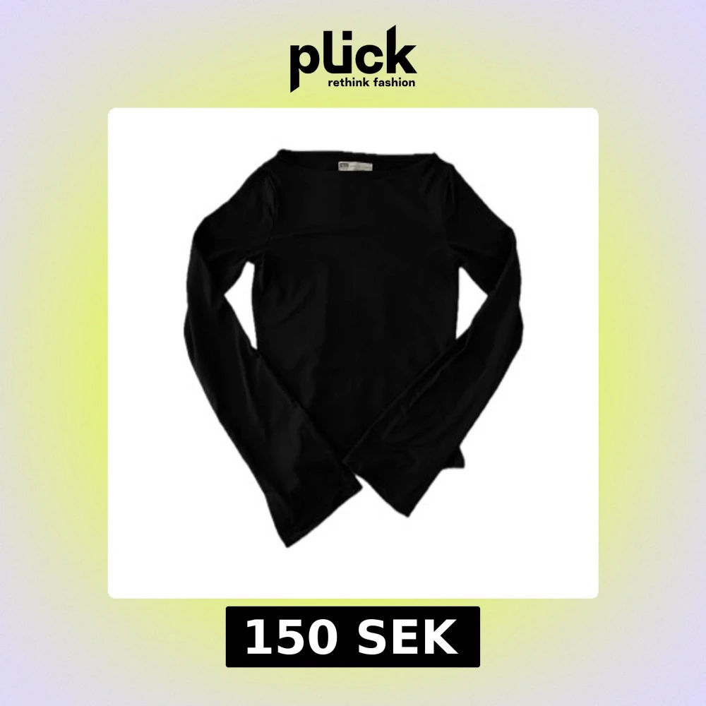 säljer en oanvänd båtringad top med utsvängda ärmar. tröjan sitter tajt och har en stretchig passform. den är i storlek s men känns som en xs.