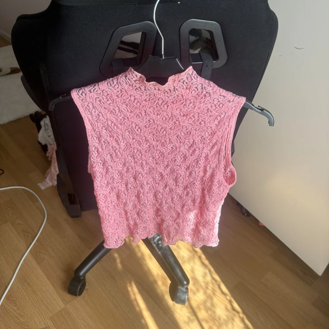 supersöt rosa ärmlös topp i spets med hög hals och vågig kant. använd någon enstaka gång💕