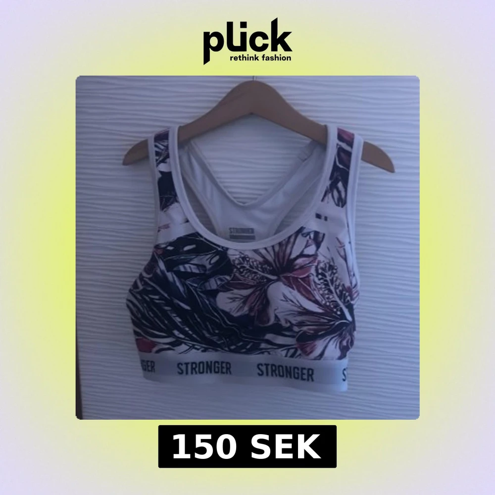 Sportig linnetopp från Stronger med blommigt mönster i vitt, svart,lila och blåt . Elastiskt band med logga nertill och brottarrygg för extra stöd. Perfekt för träning och aktiva dagar. Materialet är en mix av polyester och spandex för maximal komfort.