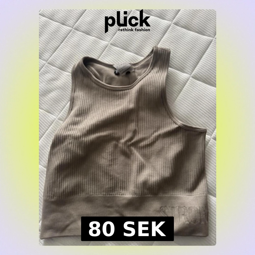 Snygg beige ribbad linnetopp från Stronger med broderad logga längst ner. Toppen är ärmlös och har en croppad passform som passar perfekt till höga byxor eller shorts. Materialet är mjukt och stretchigt, vilket gör den superbekväm. Rätt så liten i storleken