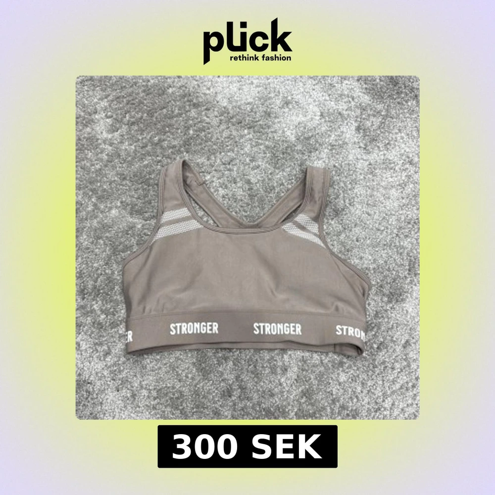 Snygg beige sporttopp från Stronger med bred resår och textdetaljer. Toppen har en racerback-design och är tillverkad i ett stretchigt material för optimal komfort under träning.