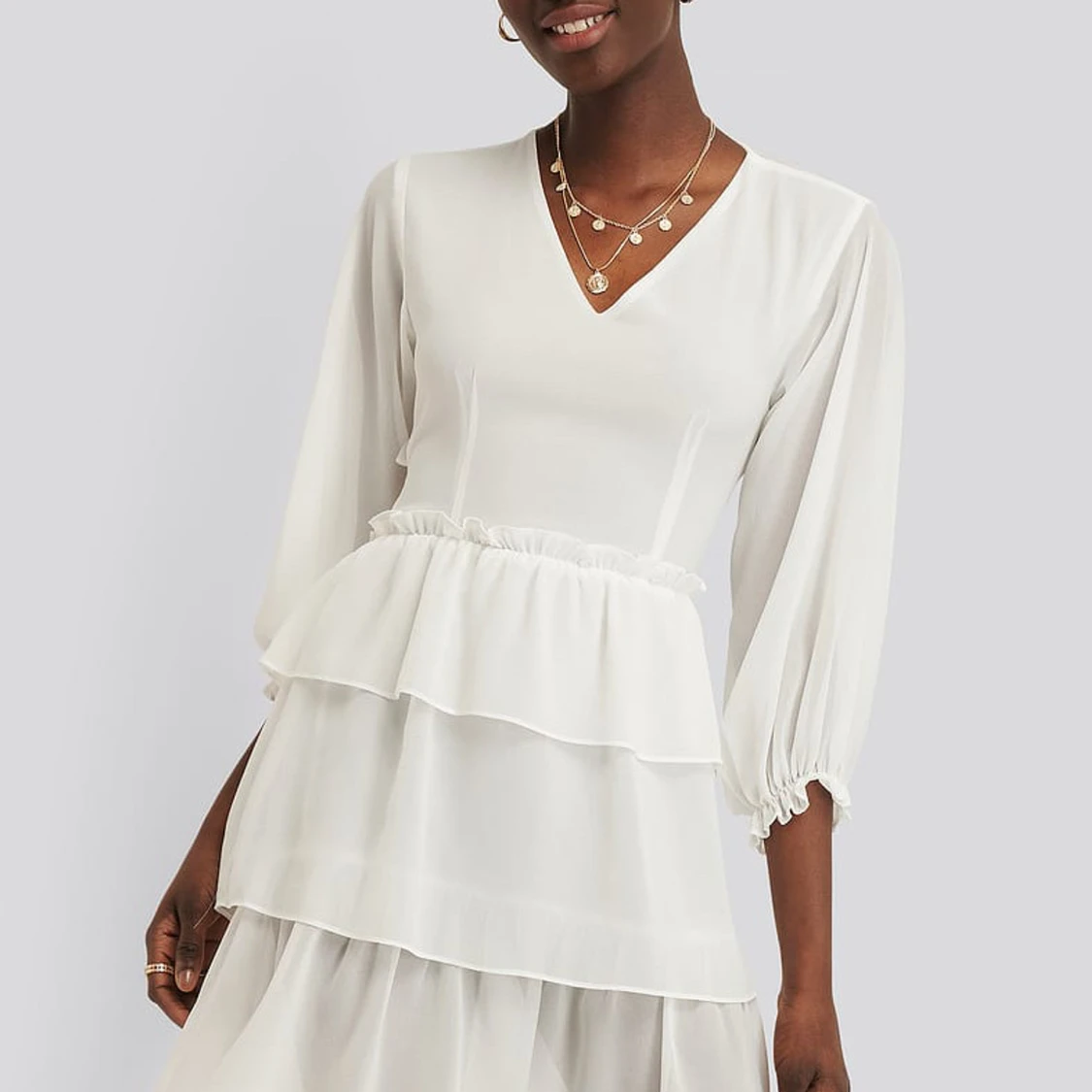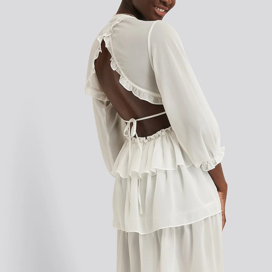 NA-KD strl 36 Studentklänning sommarklänning vit volanger