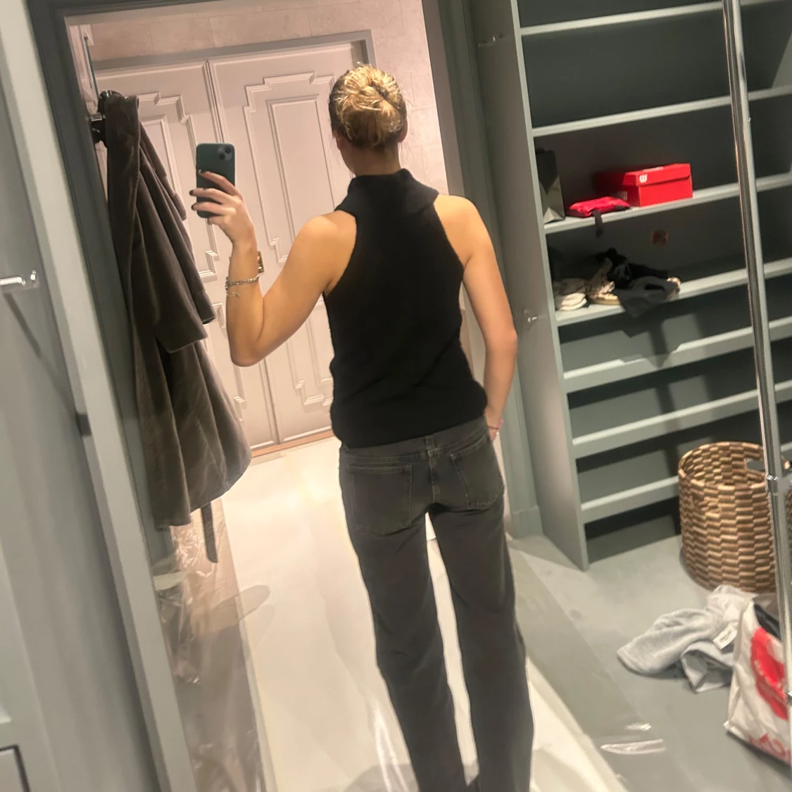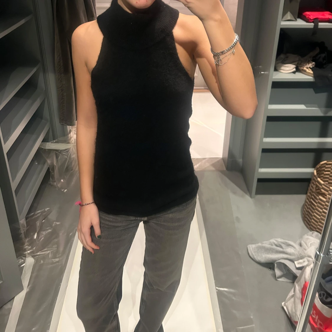 Säljer en stilren svart ärmlös polotopp. Perfekt för lager-på-lager eller att bära som den är. Toppens enkla design gör den lätt att matcha med olika outfits.